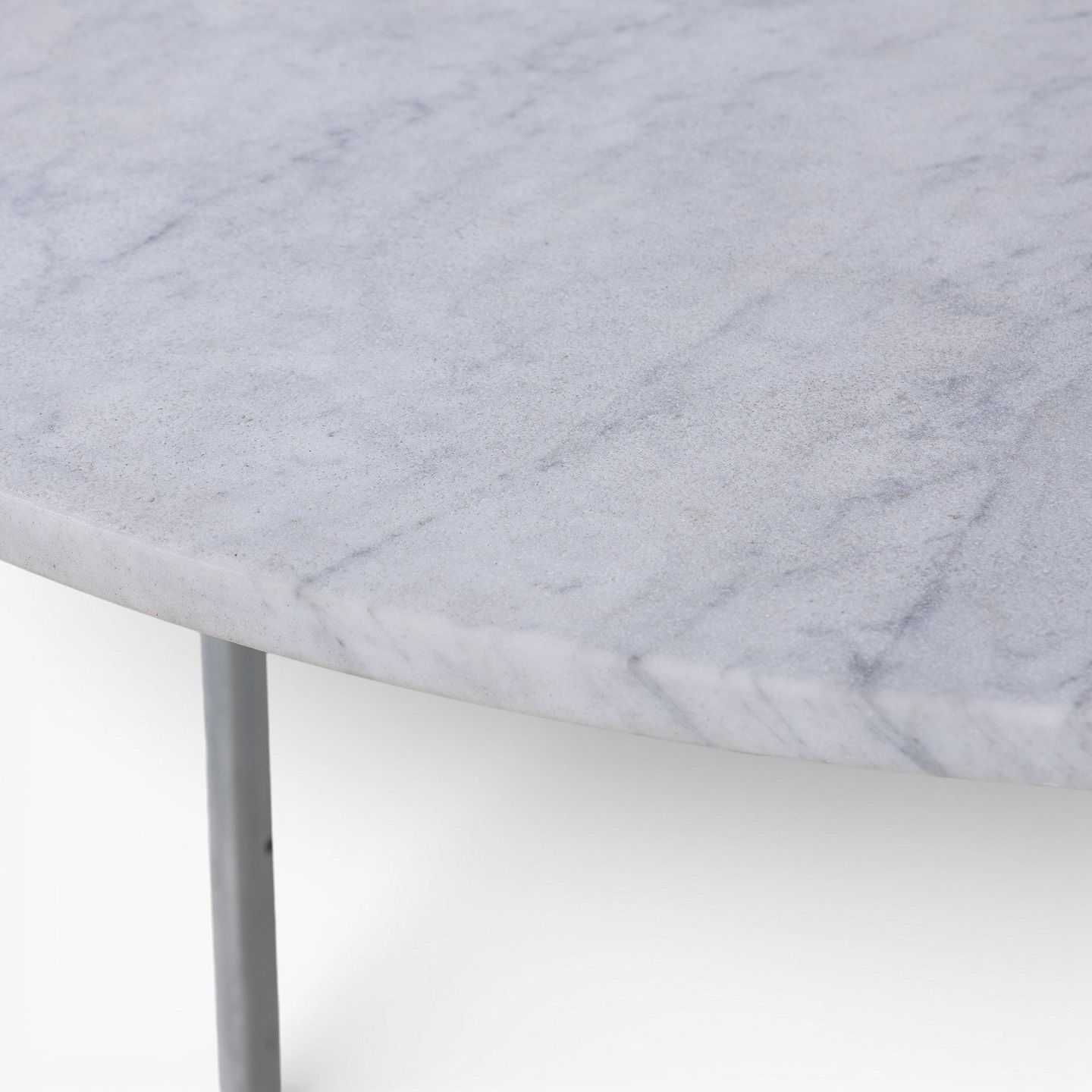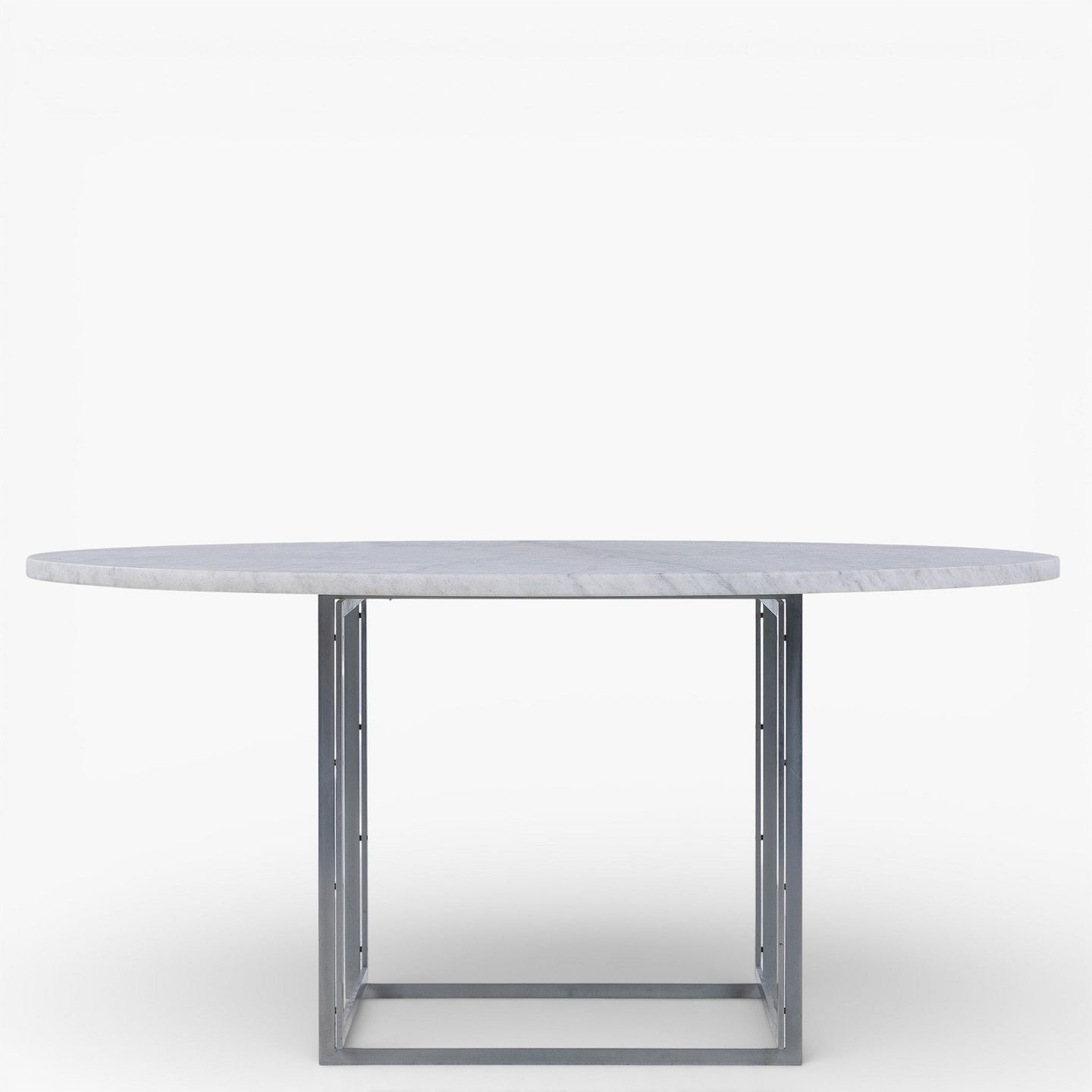PK 54 - Round dining table with light flint-rolled marble top on a frame of matt chrome-plated steel. Designed in 1963.