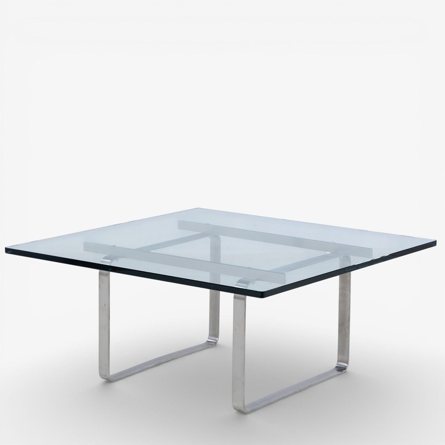 CH 106 - Sofabord med stel i stål og plade i glas.