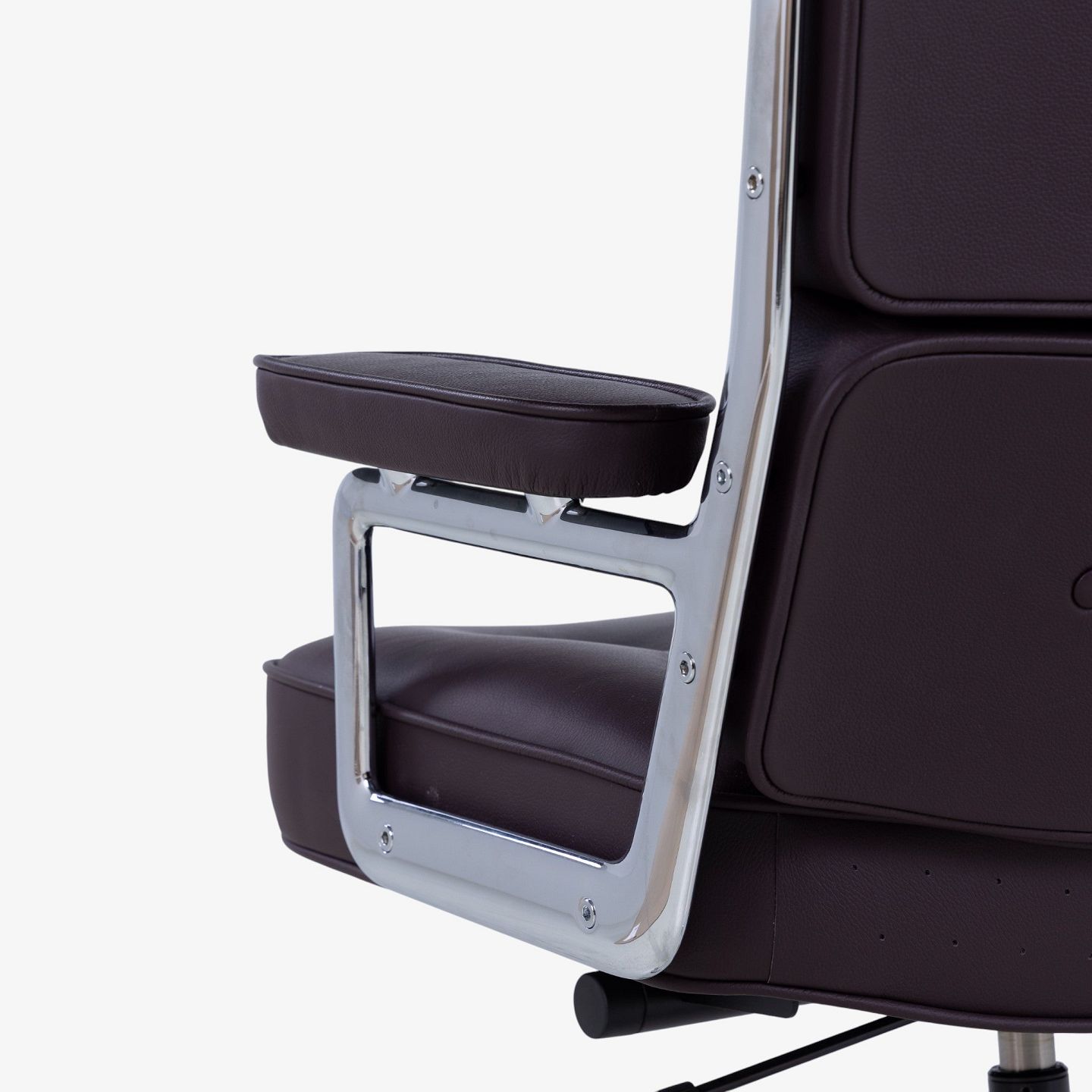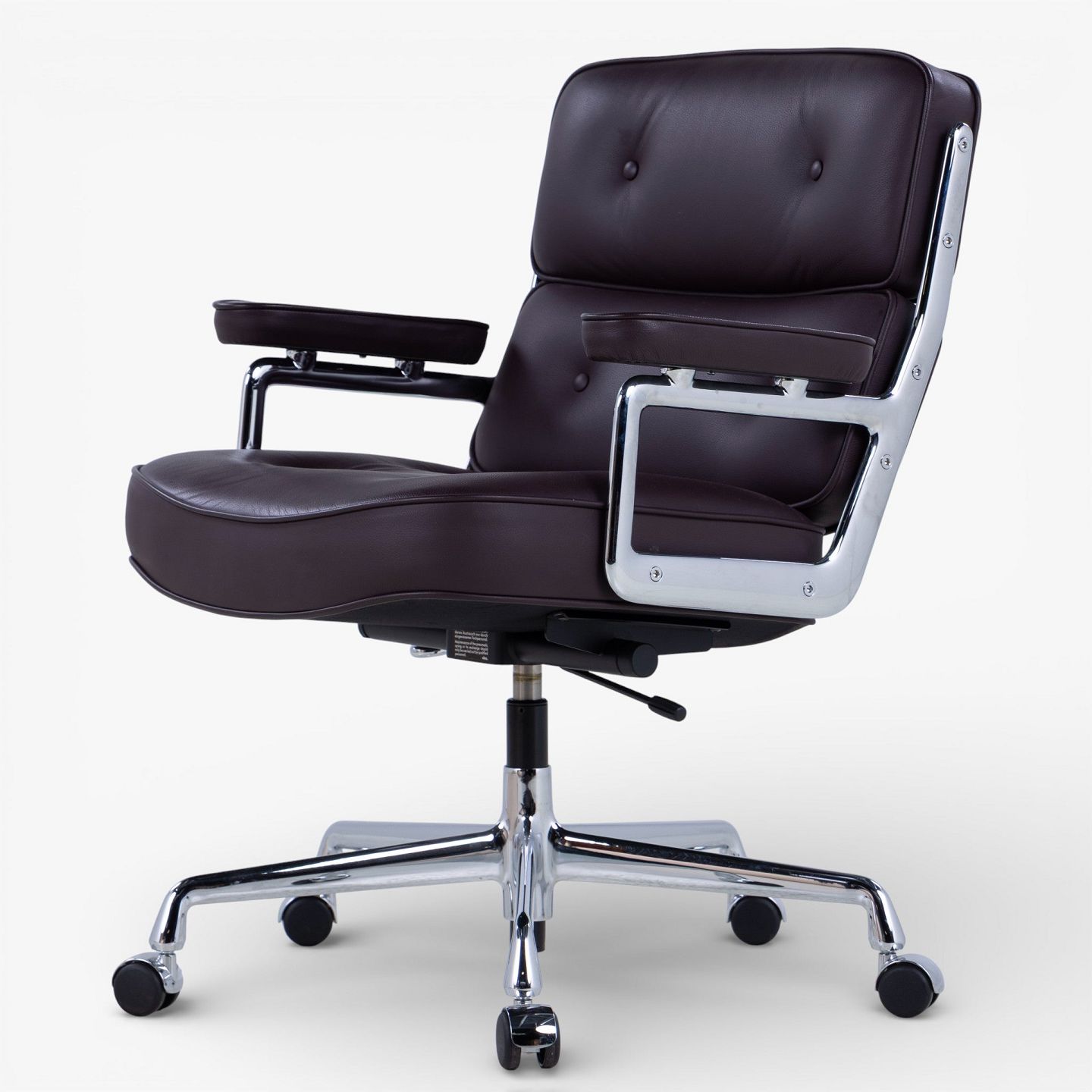 ES-104 - Office chair in dark brown leather with armrests and steel frame with height adjustment. Manufacturer's mark.
