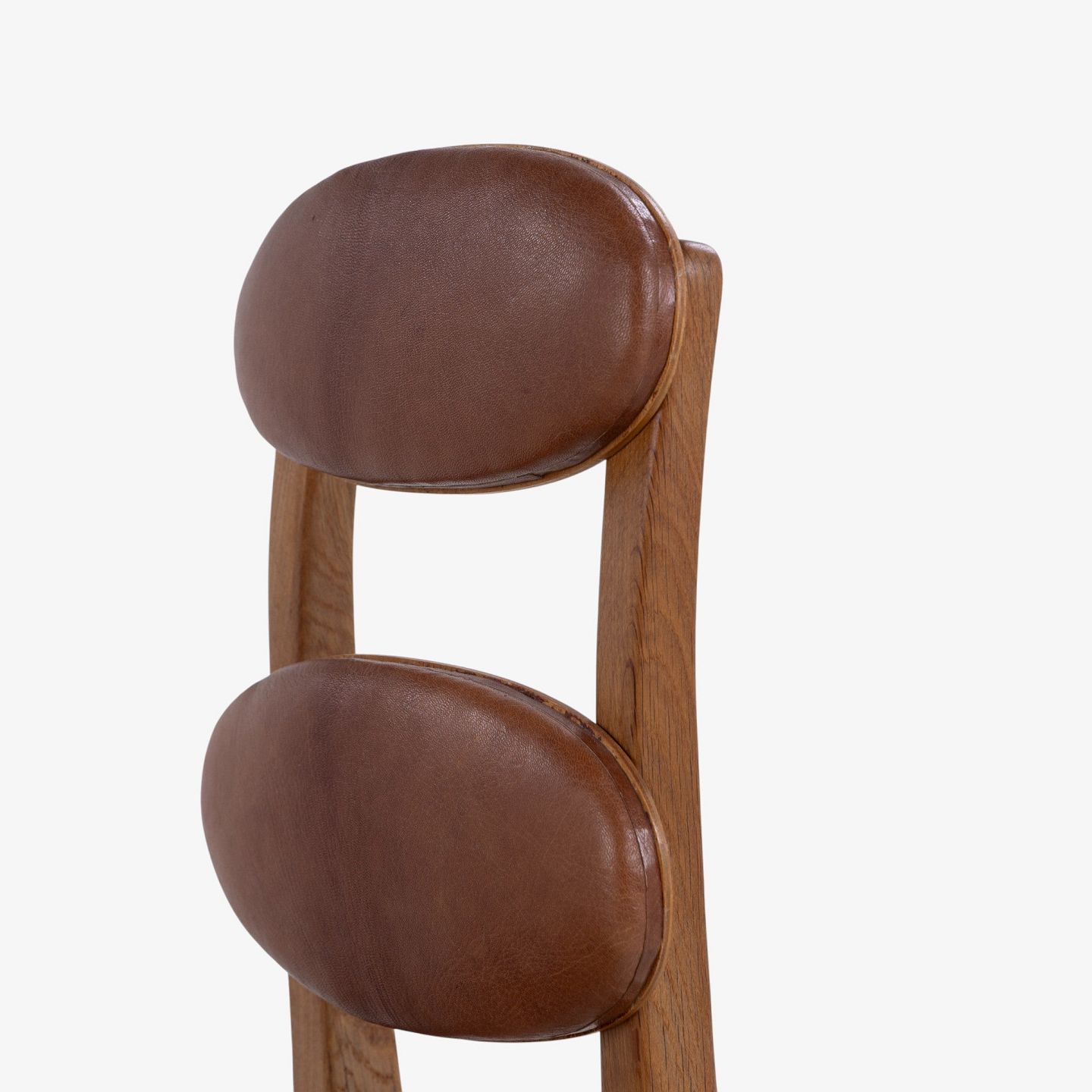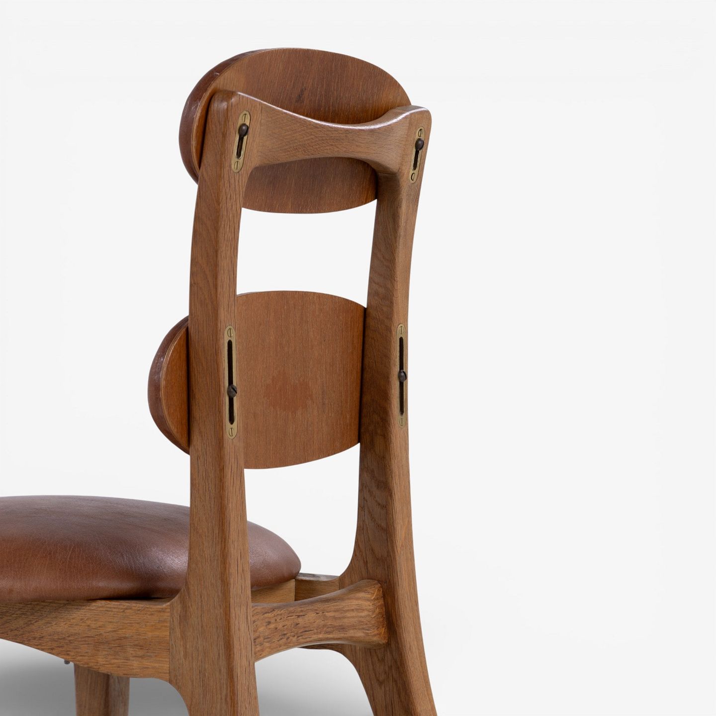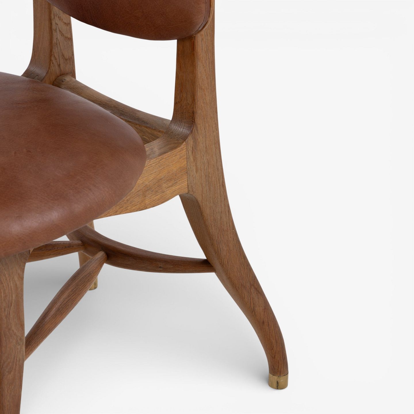 'Musician's chair' with a frame in patinated oak and an adjustable seat and back in patinated nigerian leather. Designed in 1942.