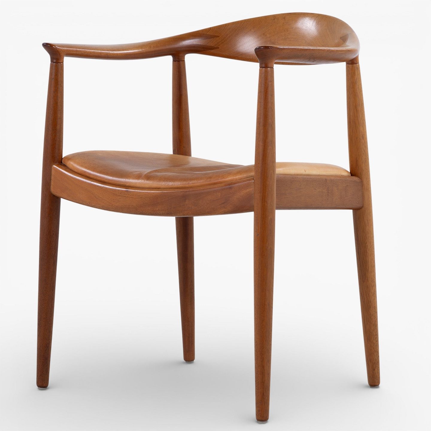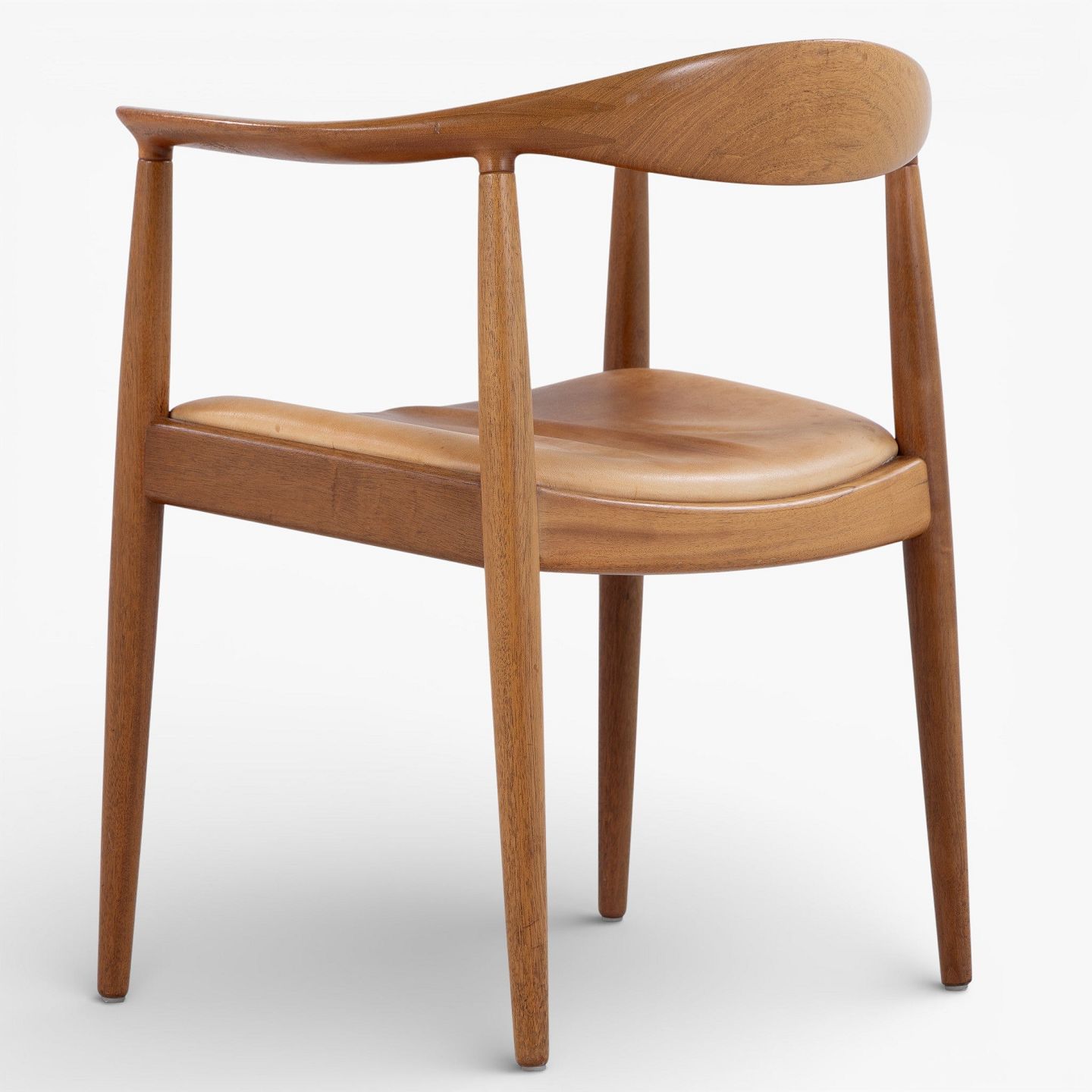 JH 503 - 'The Chair' armchair in mahogany with seat in patinated natural leather. Manufacturer's mark.