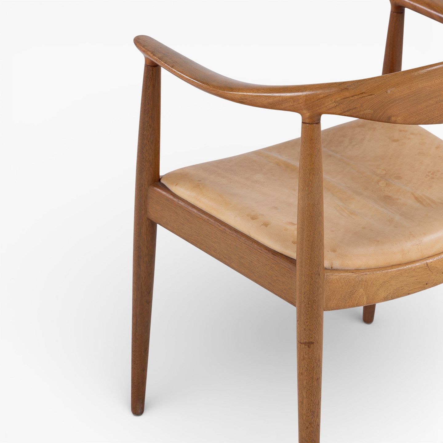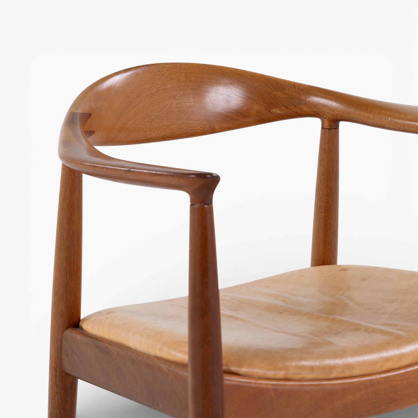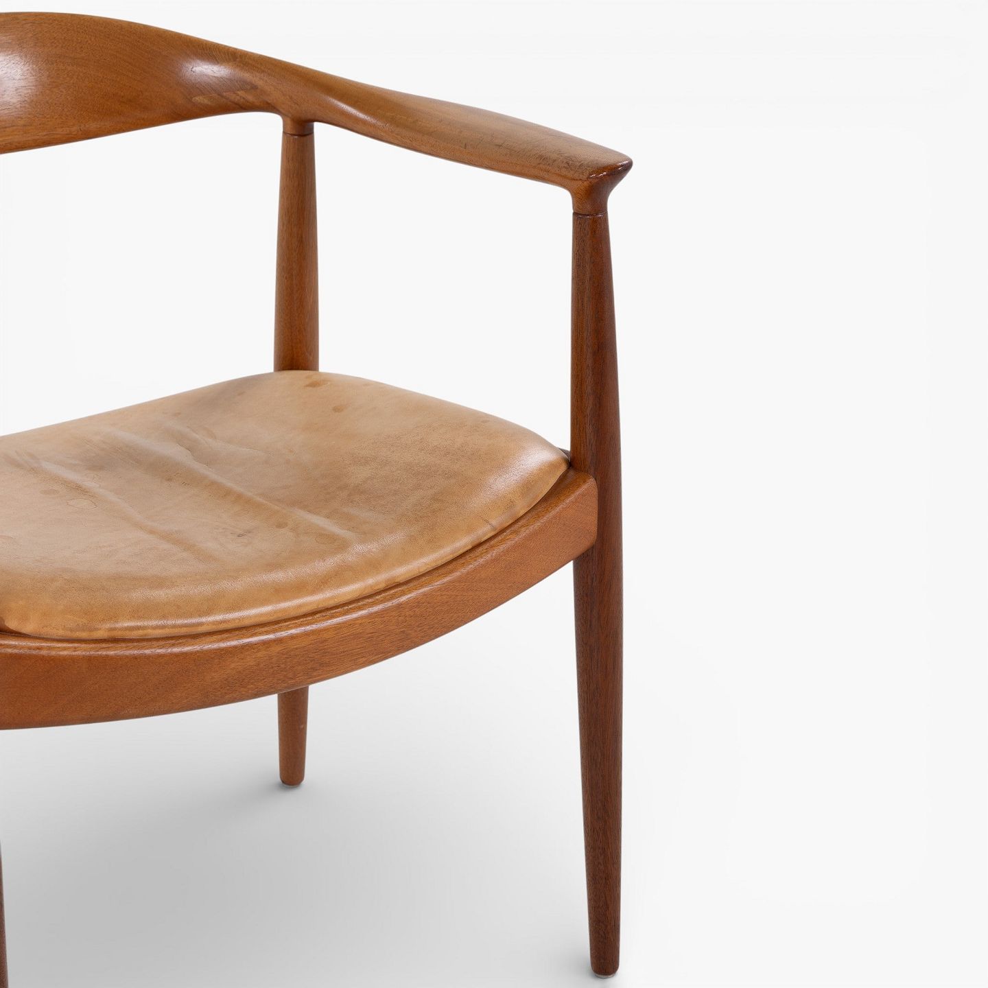 JH 503 - 'The Chair' armchair in mahogany with seat in patinated natural leather. Manufacturer's mark.