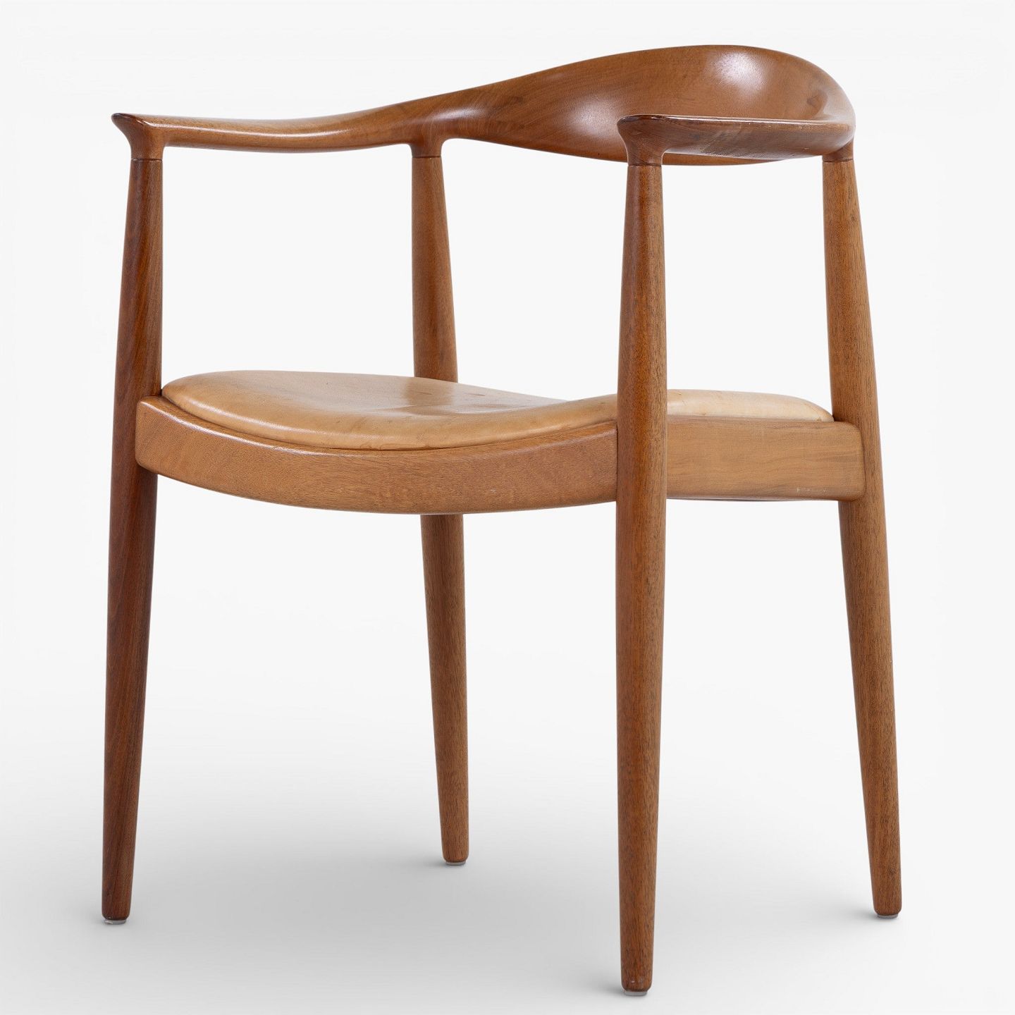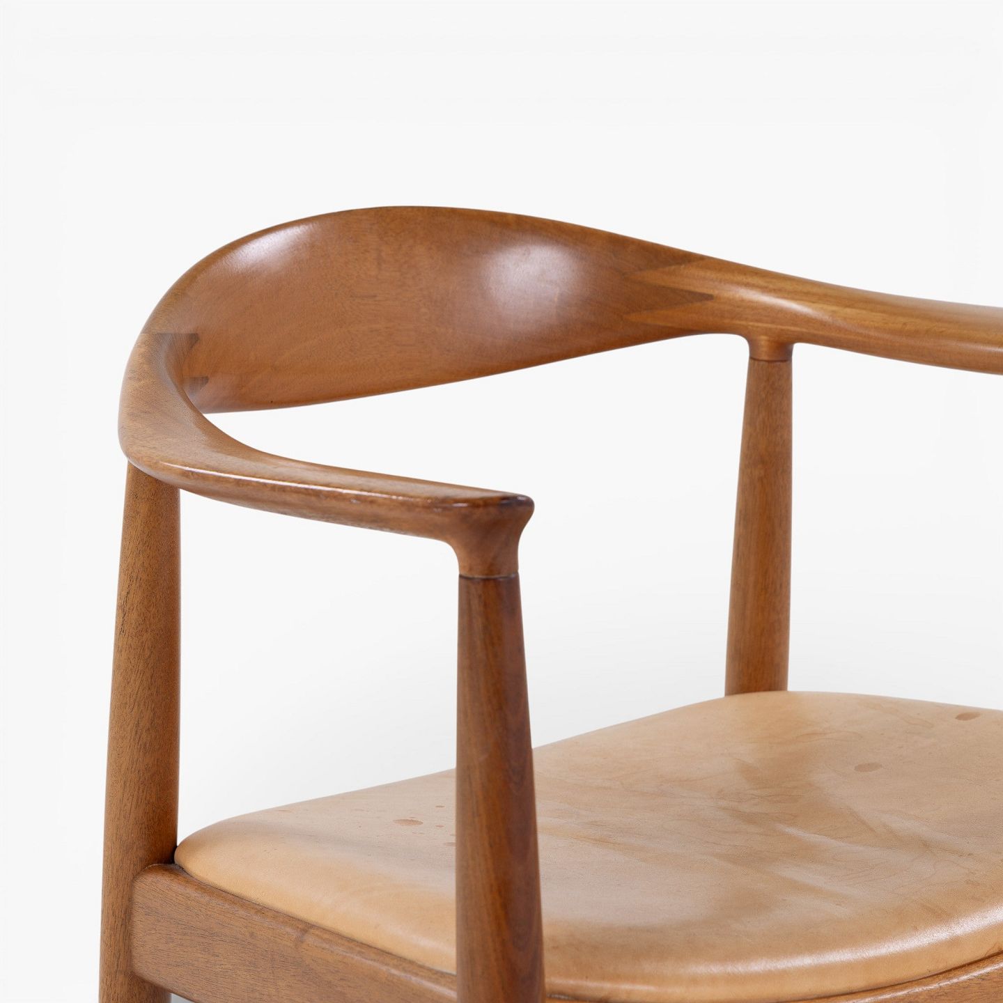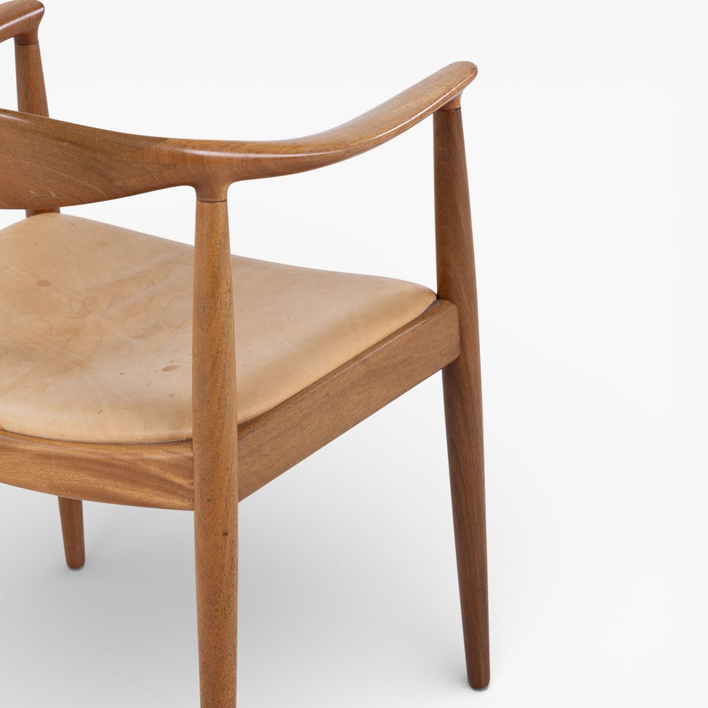 JH 503 - 'The Chair' armchair in mahogany with seat in patinated natural leather. Manufacturer's mark.