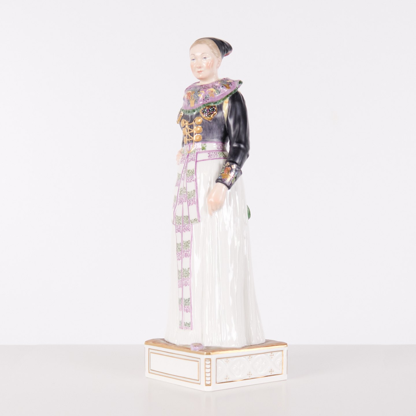 The series comprises a total of 47 figures and was produced between 1906 and 1925. Carl Martin-Hansen was recognised for his work with figures, busts and public monuments and belonged to the naturalistic tradition in Danish art around the turn of the century. The Danish national costume series is regarded as one of his most significant works for Royal Copenhagen and is known for its detailed and accurate representation of regional dress.