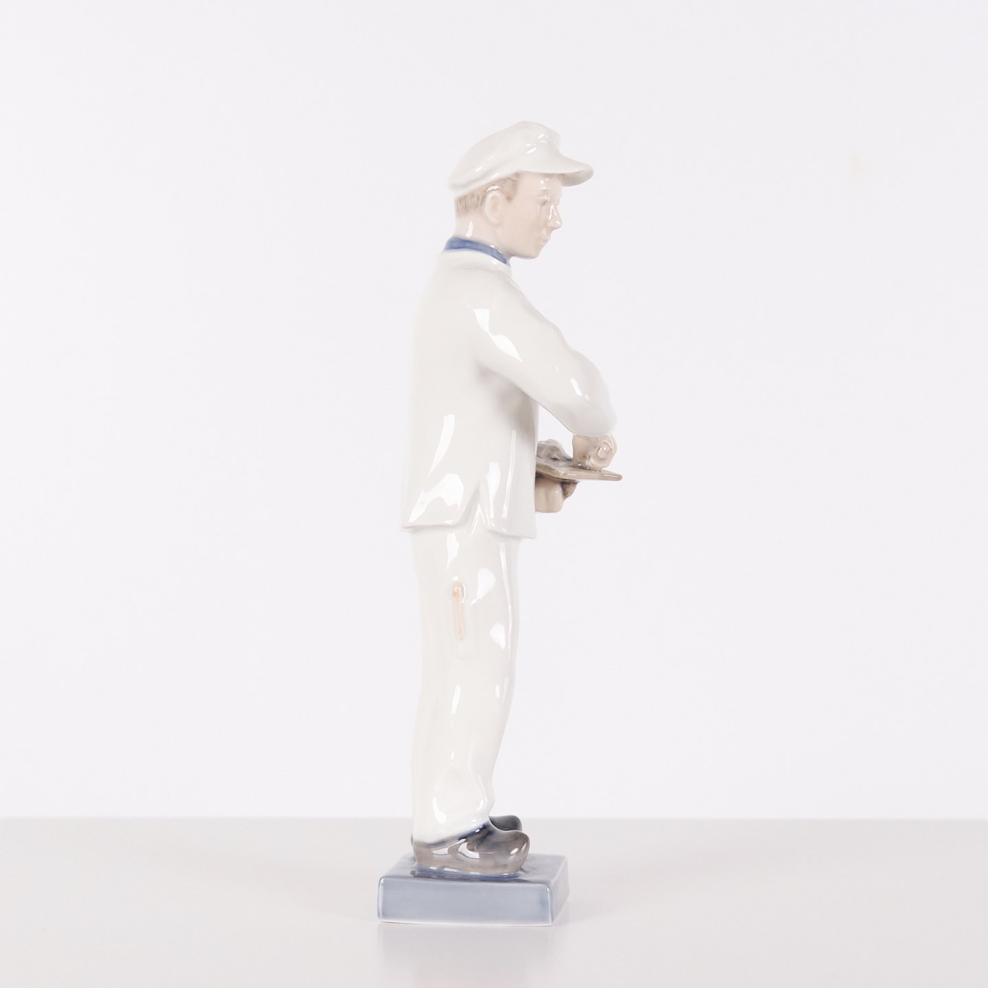 Royal mason figure, model 4377, designed by Johannes Hedegaard for Royal Copenhagen. The figure depicts a mason in work attire and is part of Royal Copenhagen’s figurine production, representing Danish ceramic figure design from the 20th century.