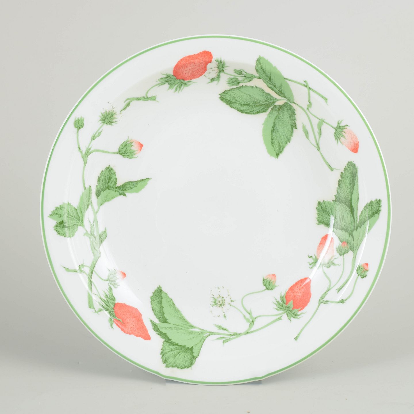 Limoges porcelain is renowned for its refined body and was widely decorated with naturalistic motifs for tableware during the 20th century. The Fraise series reflects the decorative taste of the 1980s, using fruit and botanical elements to create a fresh and classic appearance for serving pieces.