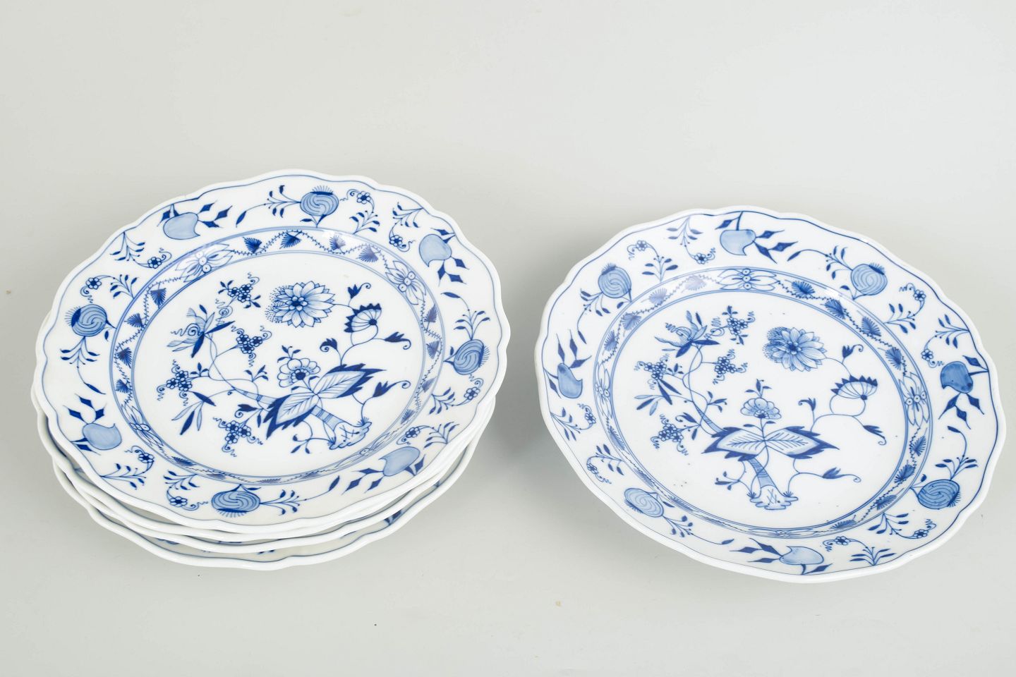 Meissen, set of 5 deep plates, Blue Onion pattern.