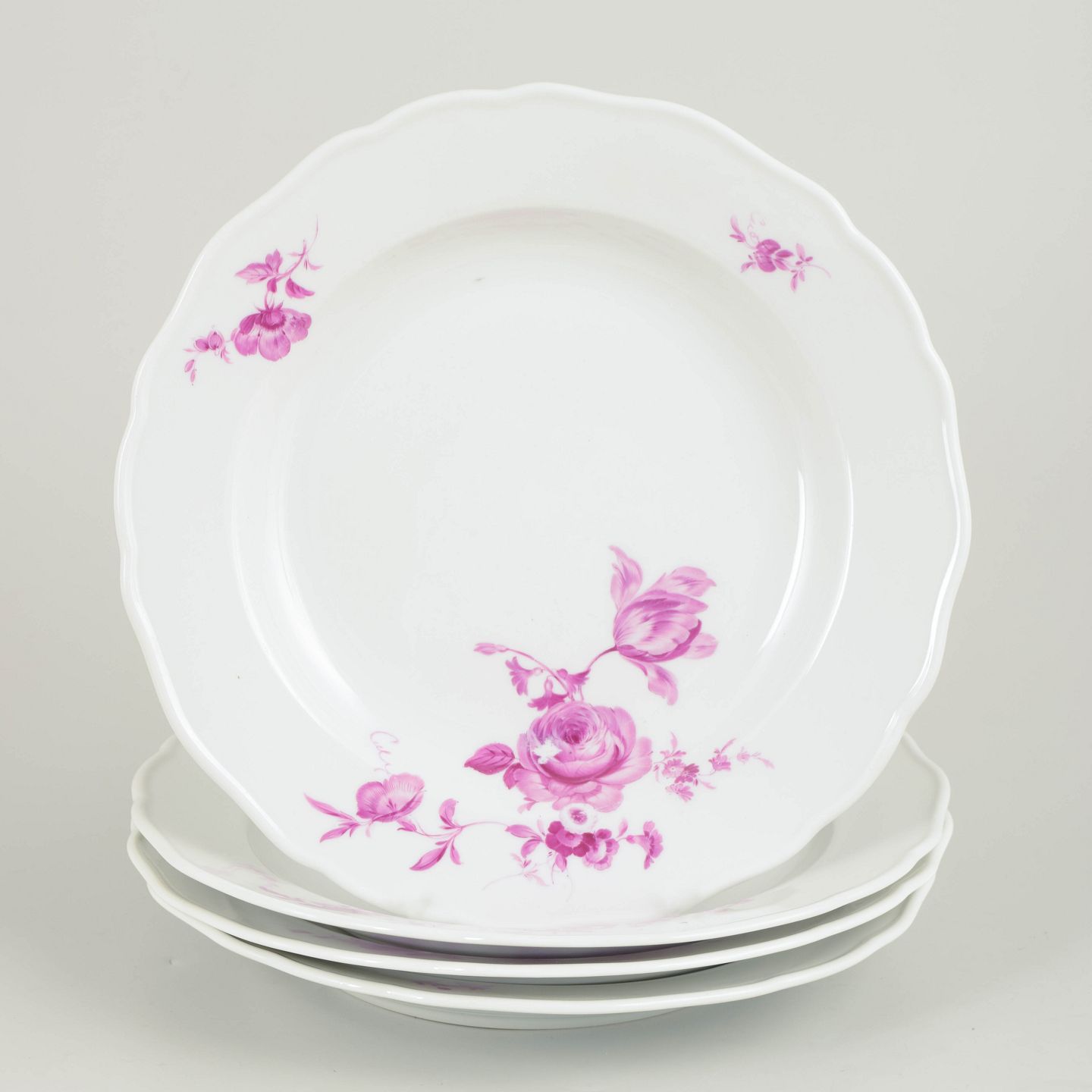 Meissen, set of four dinner plates.