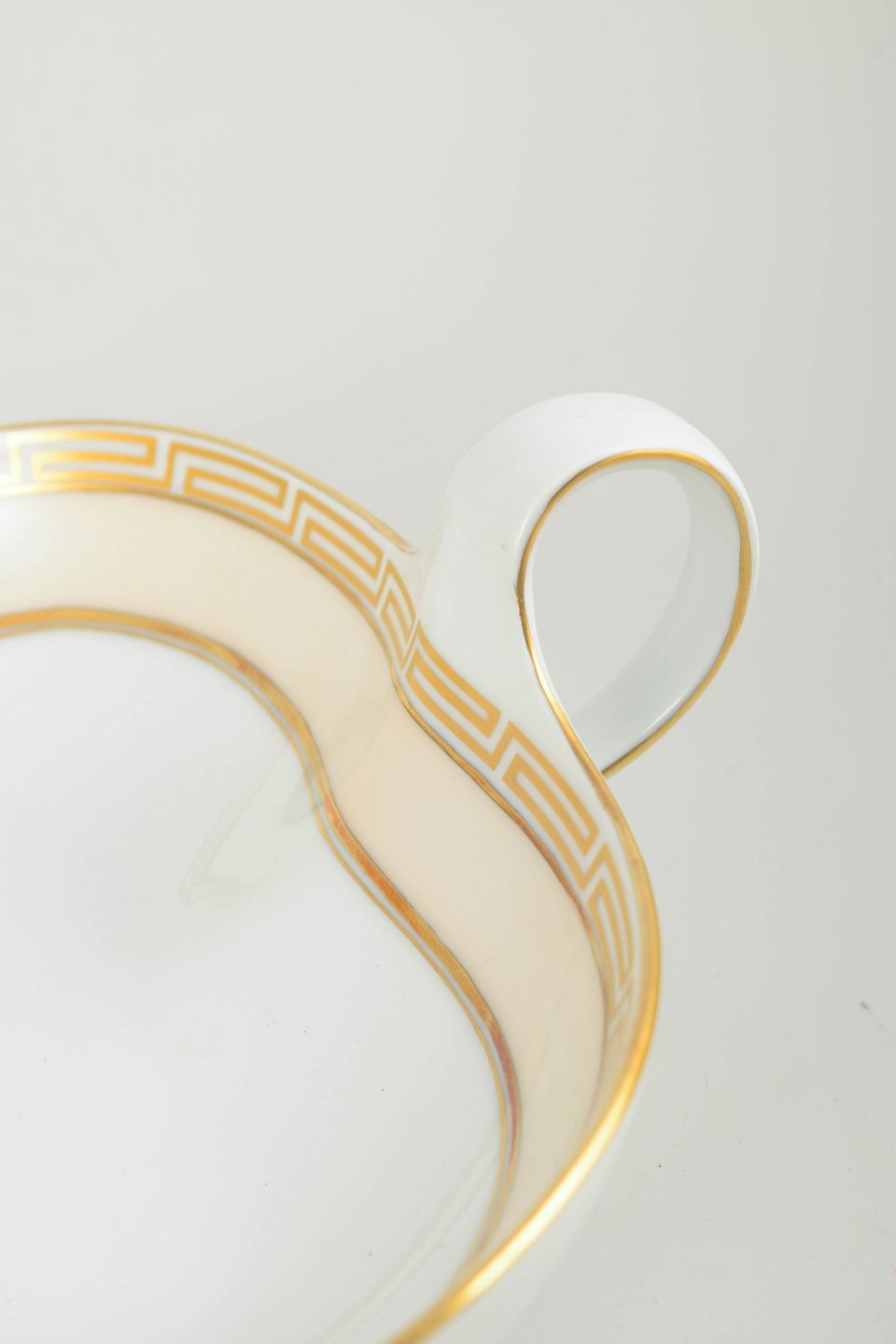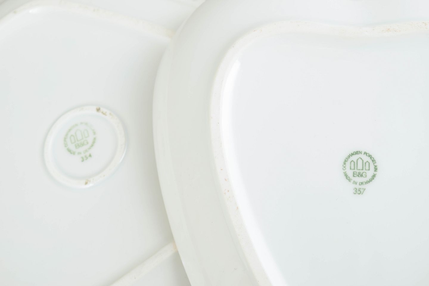 During the 1920s, Bing & Grøndahl produced a range of serving pieces characterised by a clear, geometric design language inspired by Art Deco. The distinctive shapes combined with a gilded border create an elegant and modern appearance typical of formal tableware from the period.