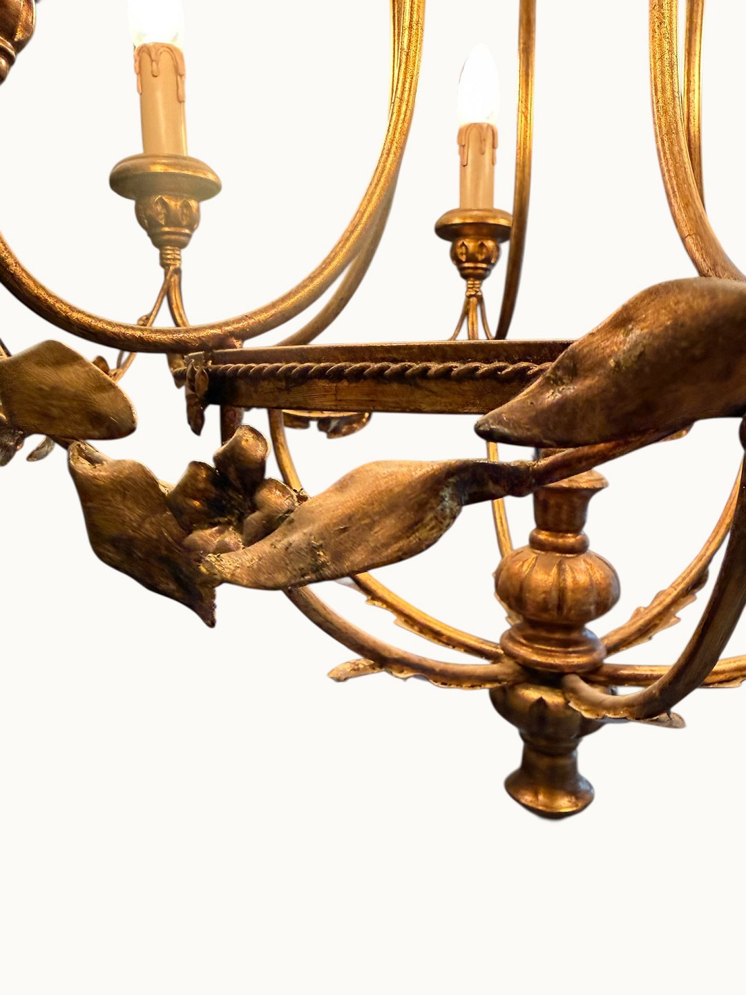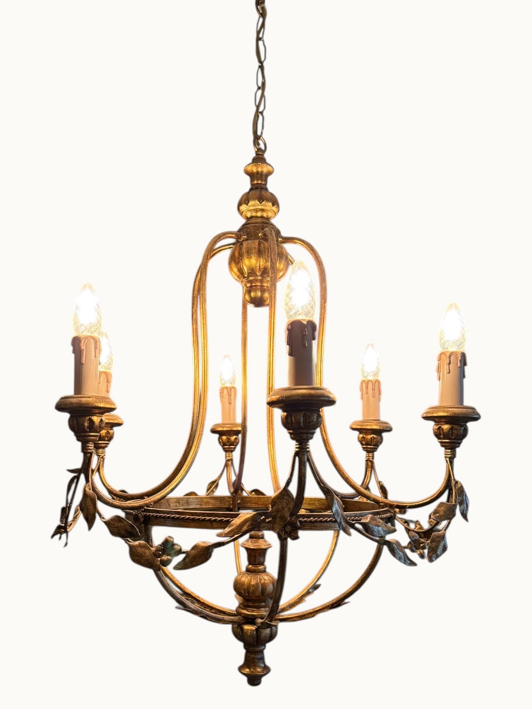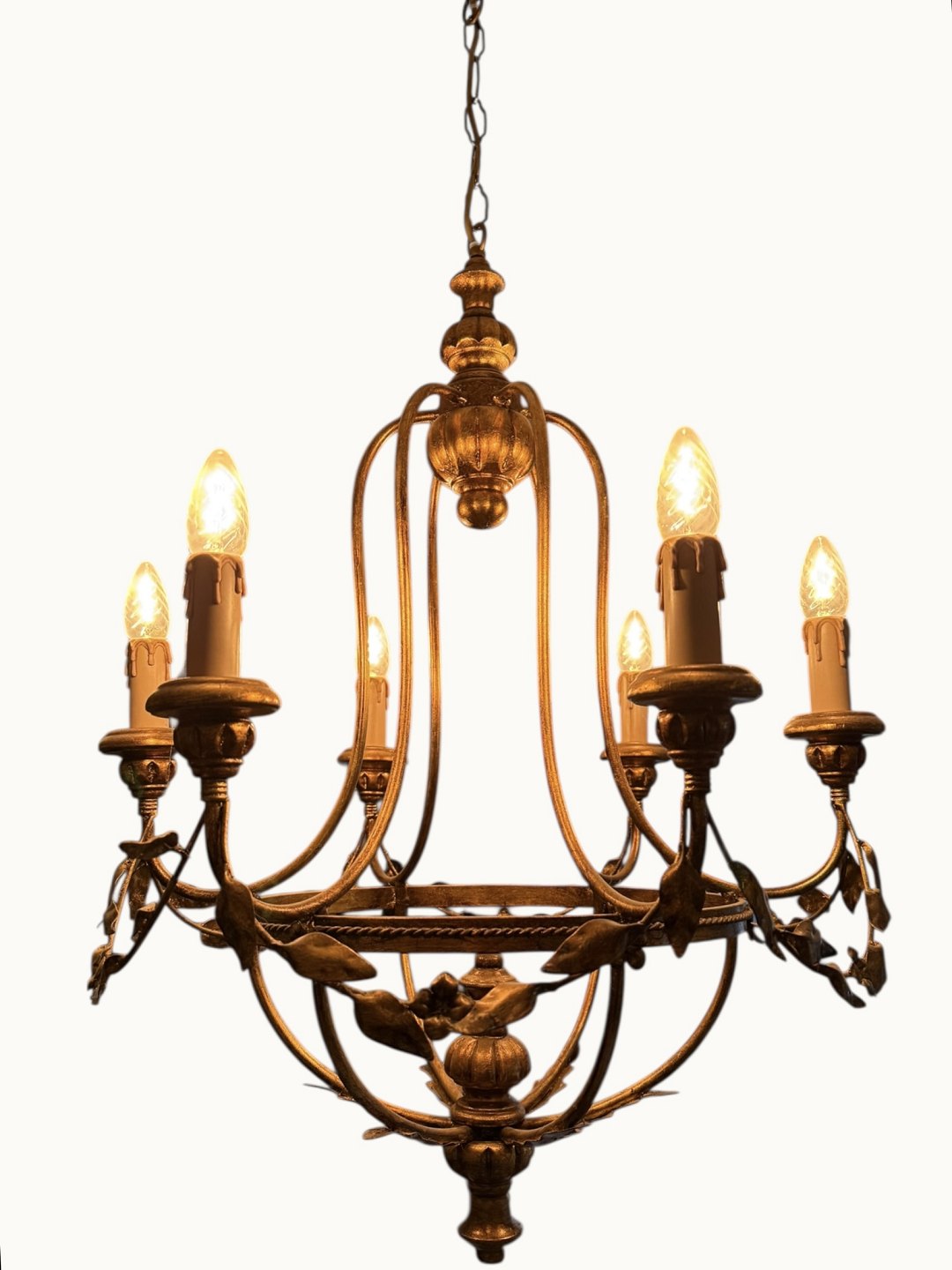 Cage-shaped metal and wood chandelier for electricity in Louis XVI style, diameter approx. 60cm *fine and functional condition*