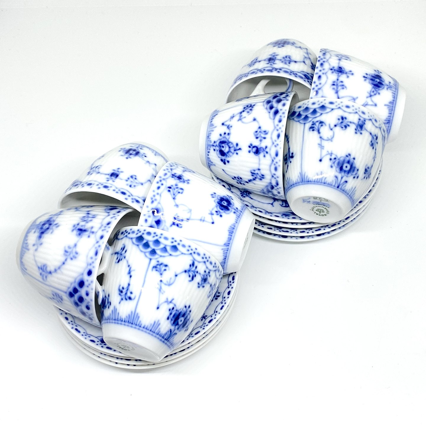 Royal Copenhagen/Kgl Blue Fluted half lace coffee cup and saucer. Decoration number cup 1/528. Decoration number saucer 1/528-526. 1 assortment.