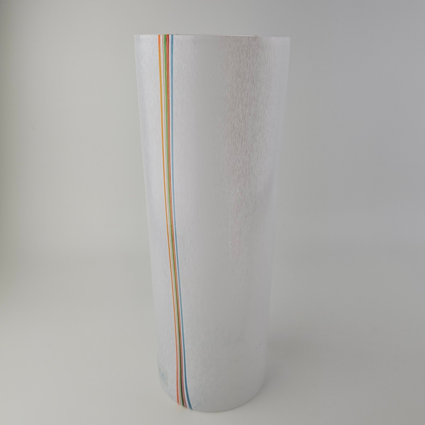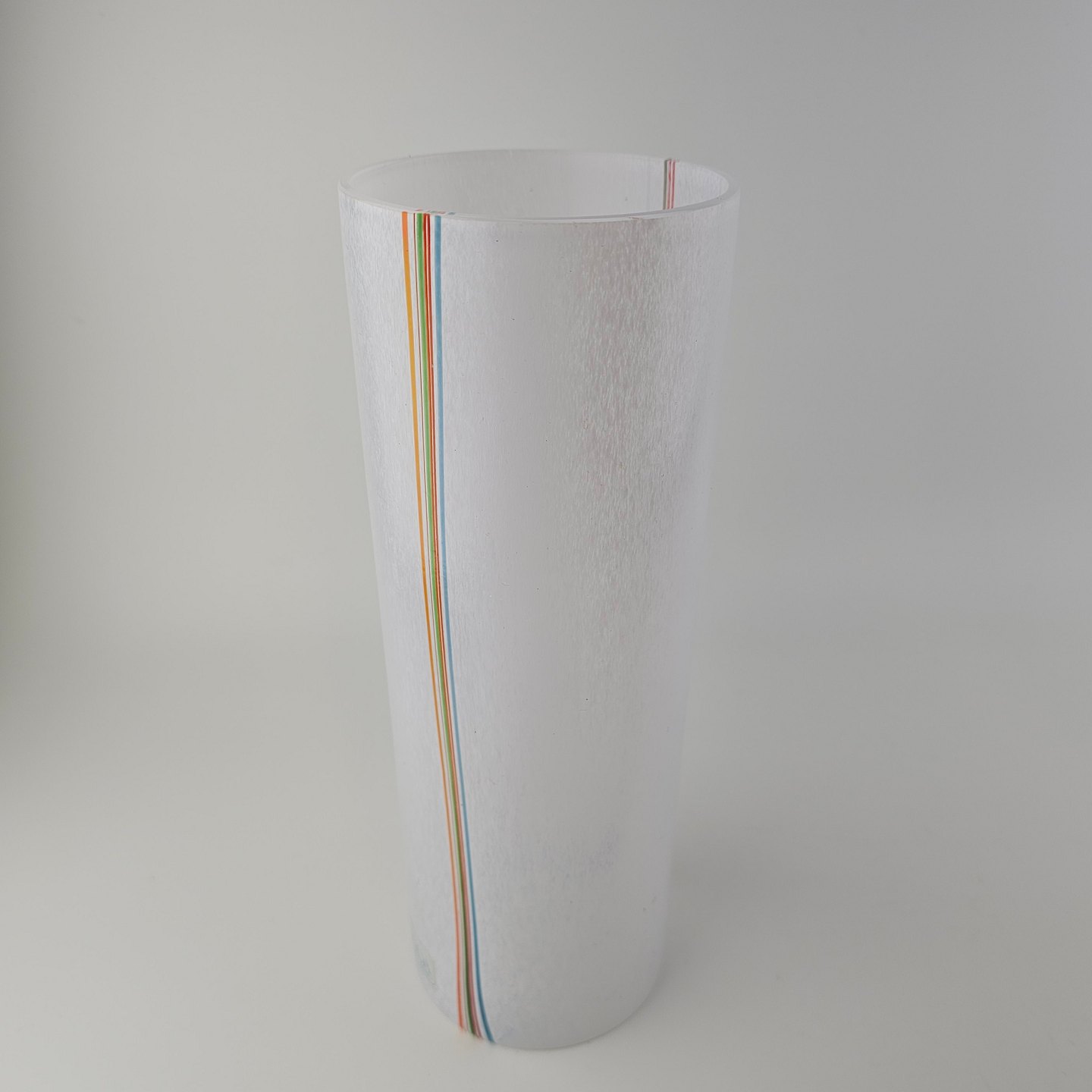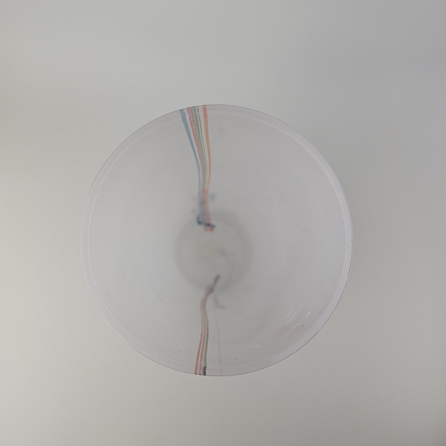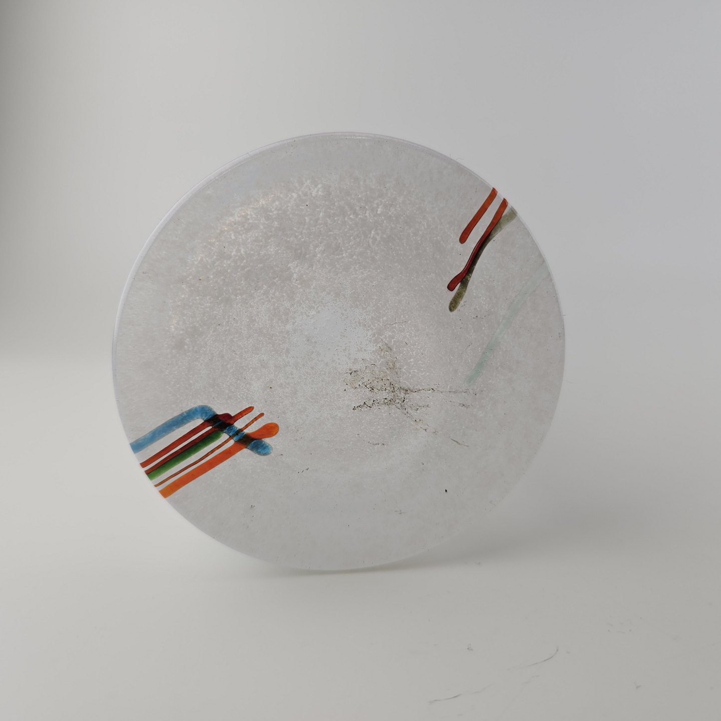 Skål i glas med dekoration af linjer og streger i flere farver
