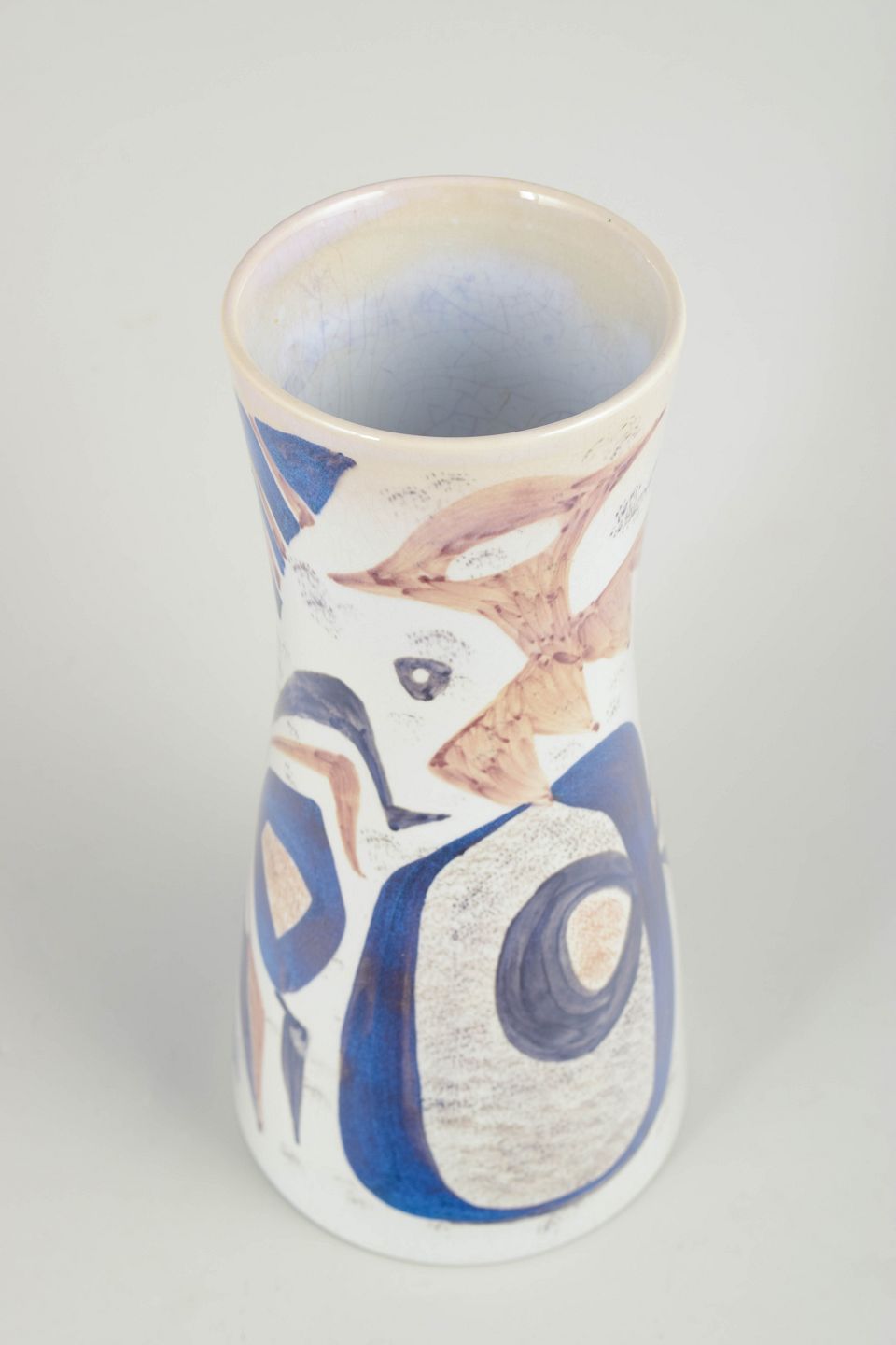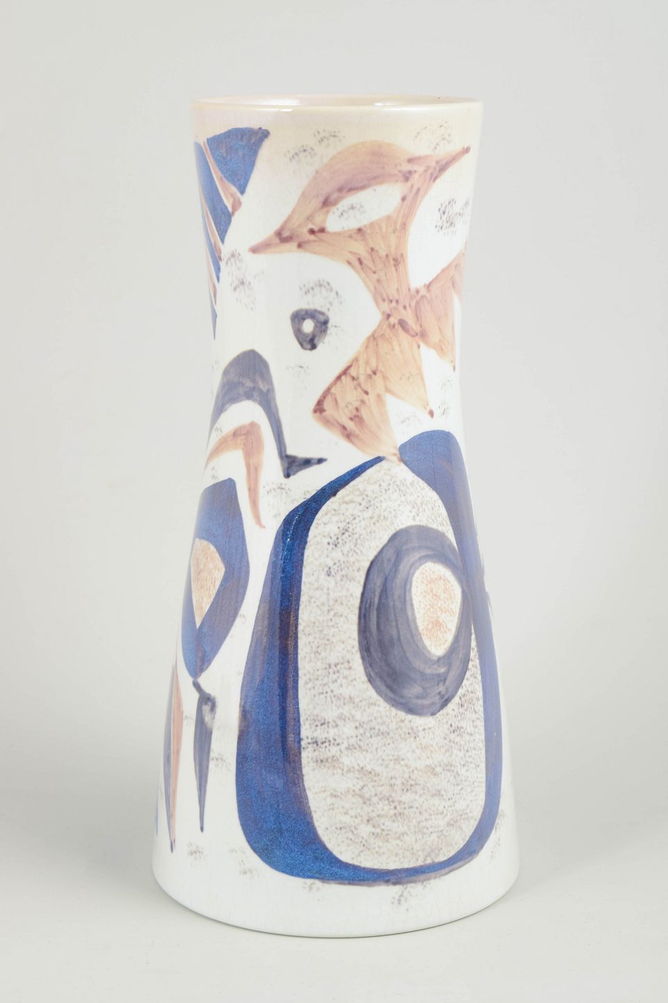 Danish faience art of the 1960s was characterised by an experimental visual language in which ceramic form was combined with painterly and abstract decoration. Artists such as Thorkild Olsen worked with free brushwork and organic compositions, giving each piece an individual and distinctly artistic expression.
