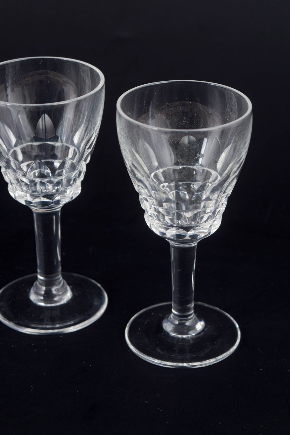 Mid-20th-century French crystal glassware is often defined by precise cutting and well-balanced proportions, using facets and flat planes to emphasise clarity and sparkle. Small schnapps glasses were a staple of formal table settings and home bars, and remain highly collectible today for their timeless elegance.