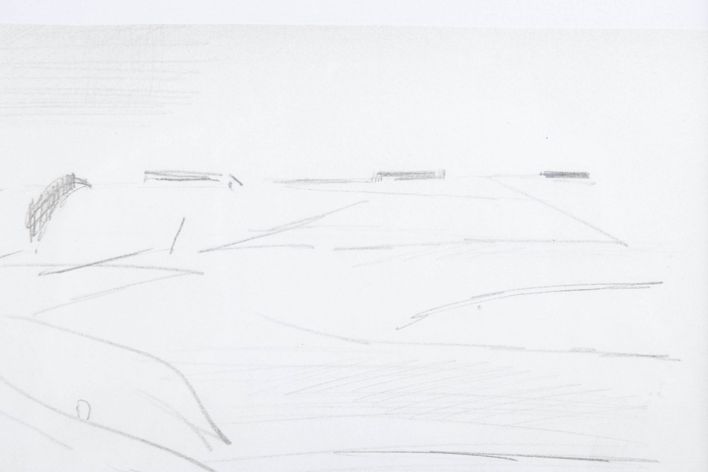 Danish landscape motif executed as a pencil drawing with a lightly abstracted composition and calm, horizontal lines.