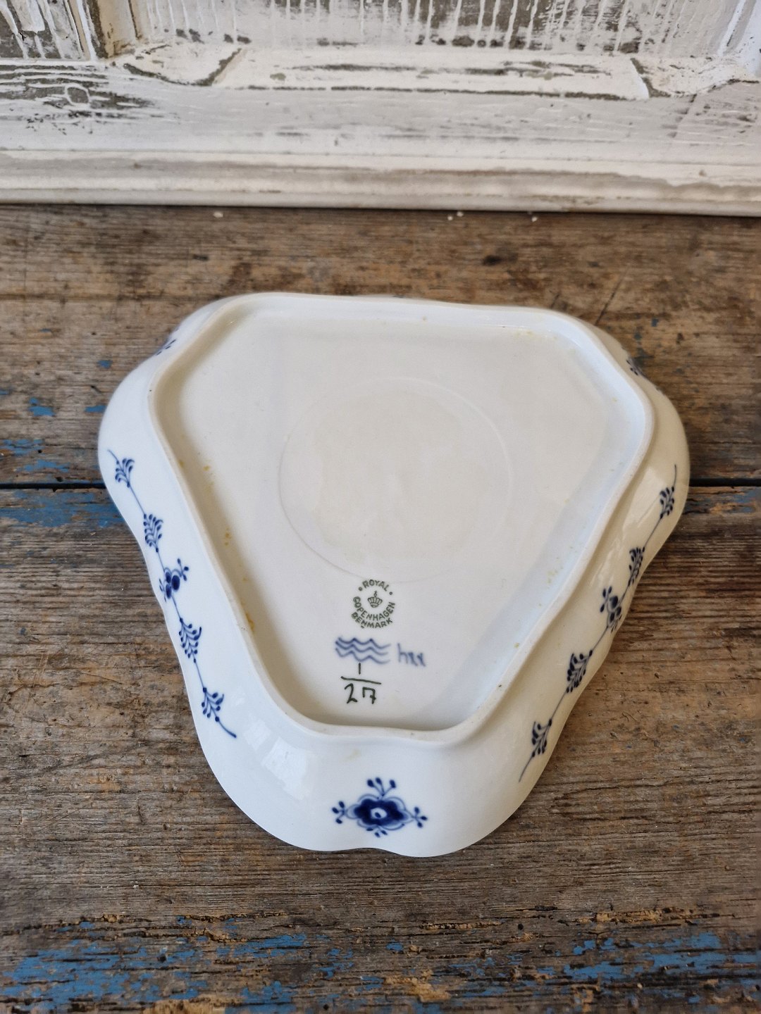 Royal Copenhagen Musselmalet riflet trekantet fad no. 27