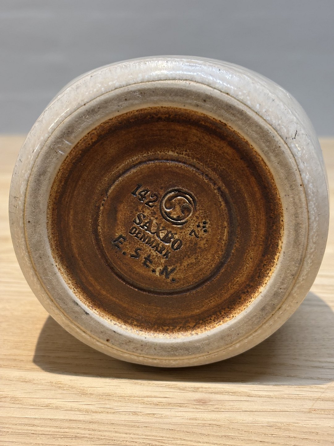 Saxbo vase model 142 med hvid glasur. sign. Eva Stæhr Nielsen H 11,8 cm. kr 4800,-