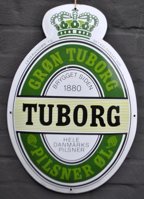 Green Tuborg enamel sign, 20th century Denmark.