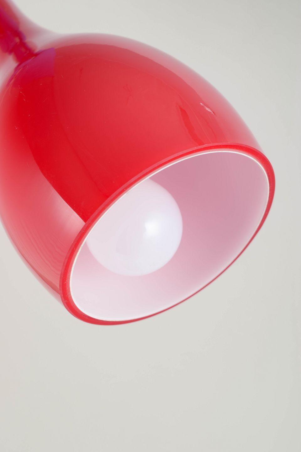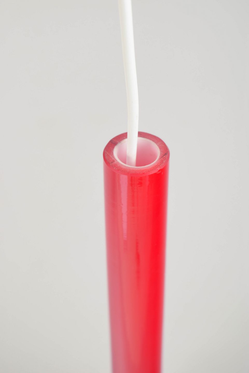 Late 20th-century Scandinavian lighting design often paired clean, sculptural silhouettes with bold, saturated colour. Mouth-blown art glass was used to introduce depth and light transmission in pendant lamps, where the elongated profile and intense hue create a crisp, modern statement both illuminated and unlit.