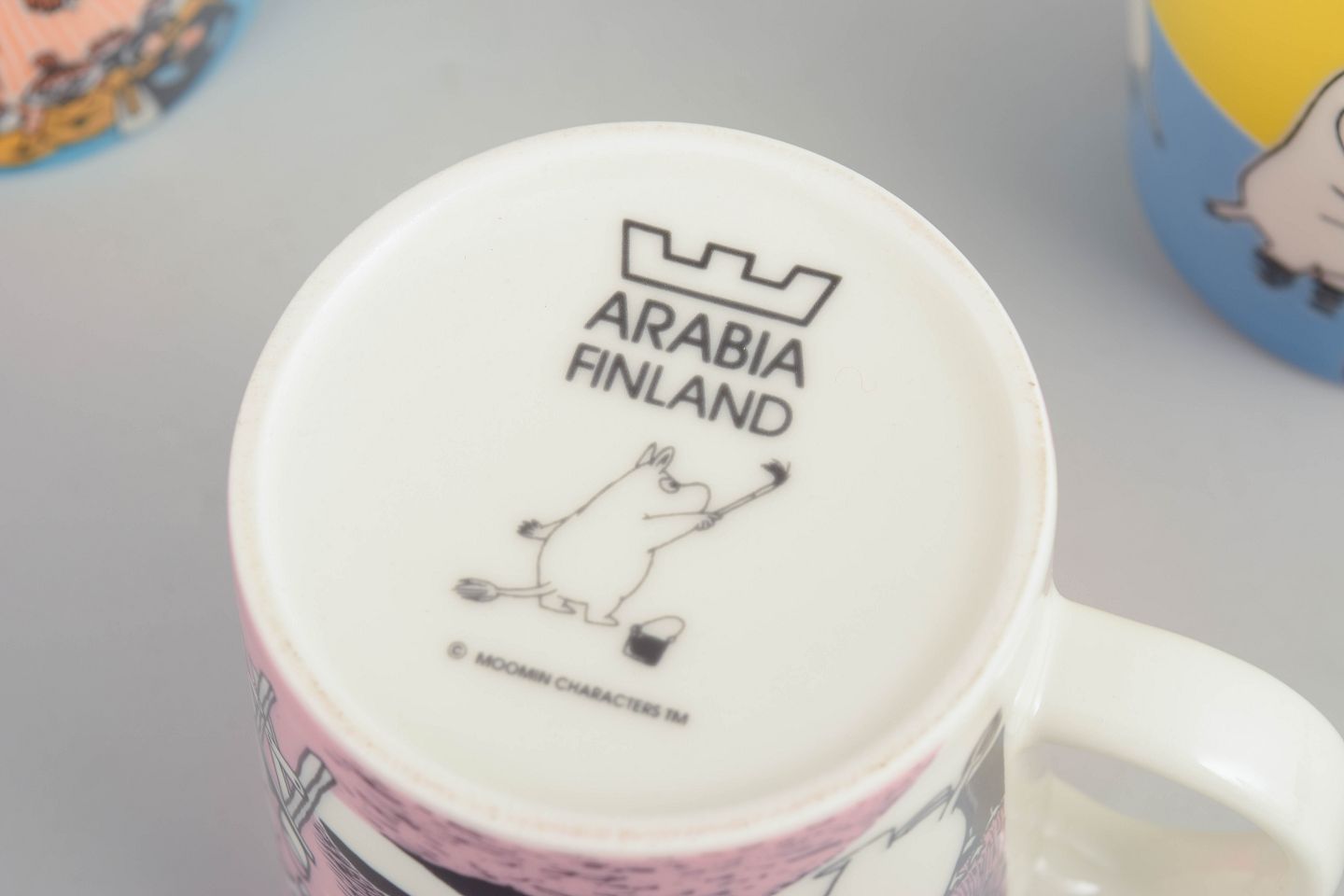 Set of four Moomin Arabia mugs.