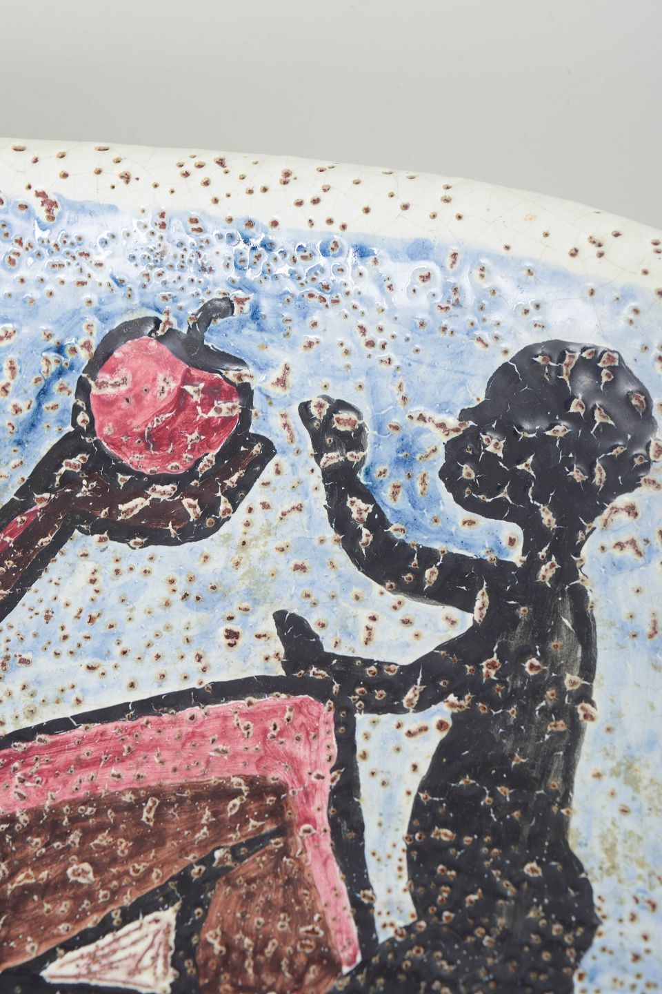 Erik Pløen (1925–2004) worked with ceramic wall reliefs and sculptural forms in the mid-20th century and was known for his distinctive visual language with figurative subjects and bold graphic surfaces. His works combine ceramic technique with a painterly sense of composition, often focusing on themes such as human relationships, mother and child figures, and symbolic imagery. Pløen’s pieces were typically produced as unique works and larger decorative commissions, making his output comparatively rare today.