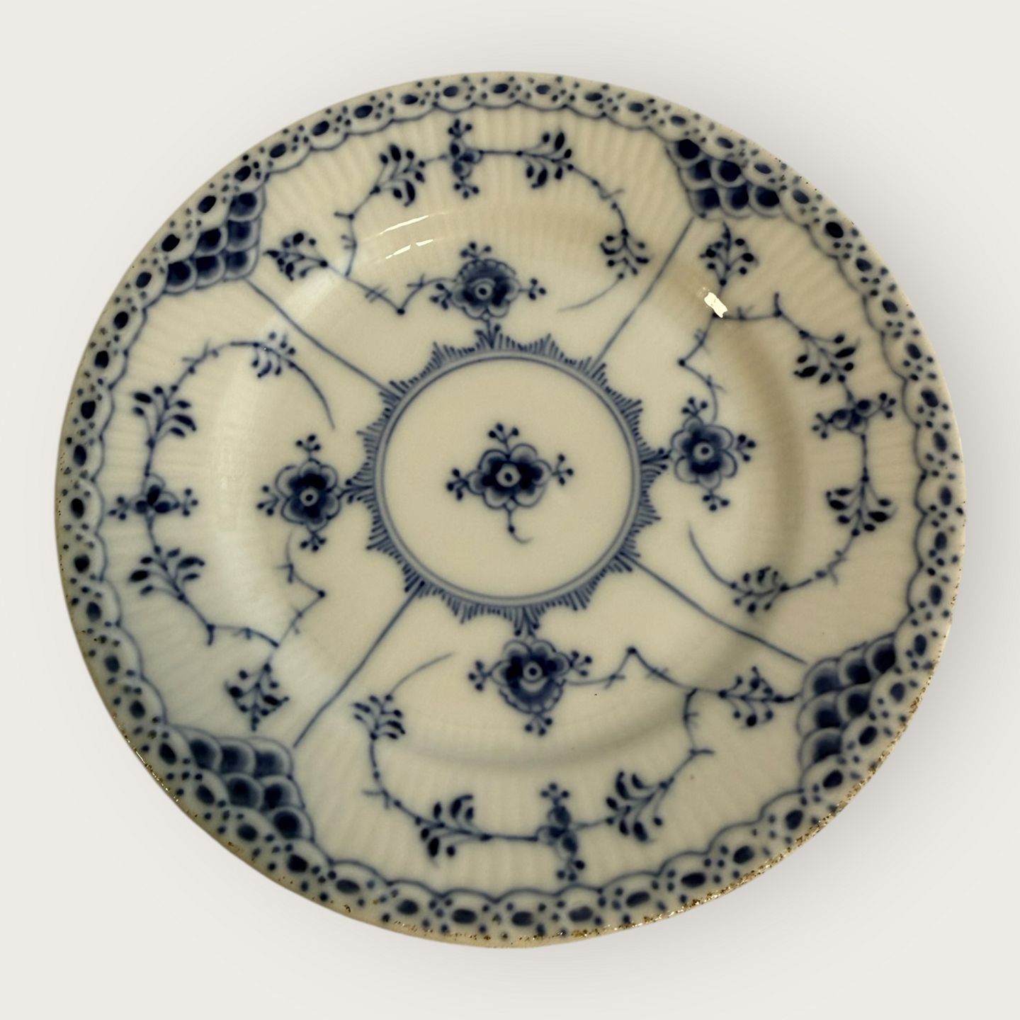 Royal Copenhagen, Blue Fluted, Half Lace, Cake Plate #1/575, 16cm in diameter, 3rd grade / employee grade *A few black dots under the glaze along the edge, otherwise in good condition*