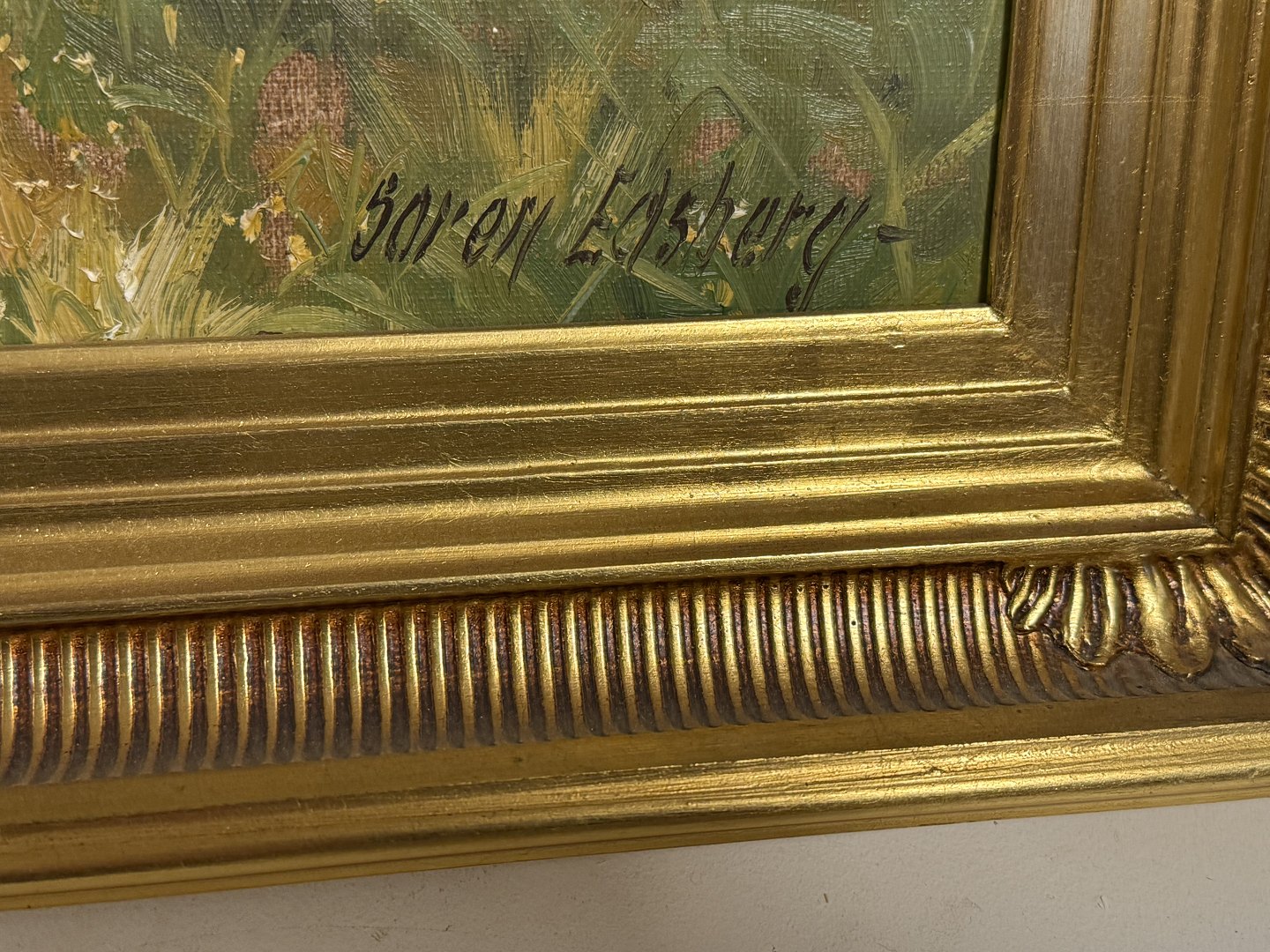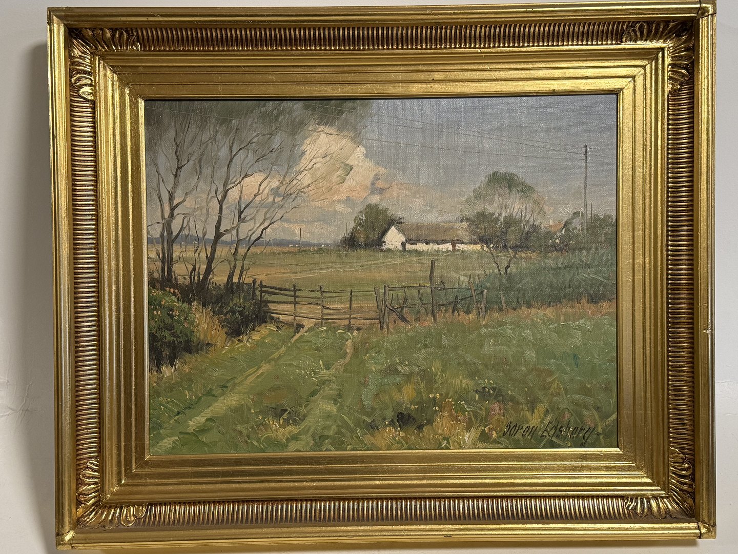 Søren Edsberg (b. 1945), Oil painting on canvas with motif from the countryside, Dimensions with frame: 53x43cm, small defect on the frame otherwise good condition