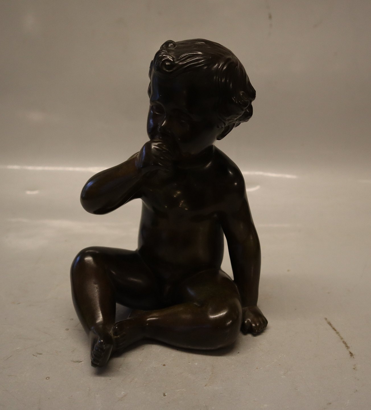 Just A Disko D 2323 Boy sitting sucking thump 19.5 cm Bronzed sculpture