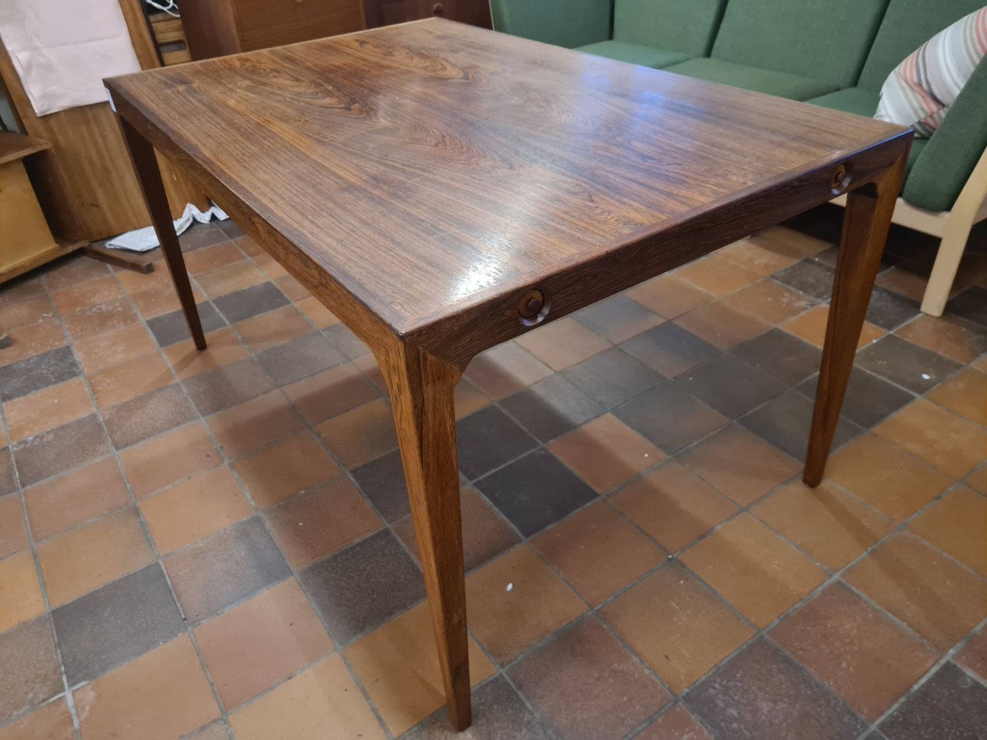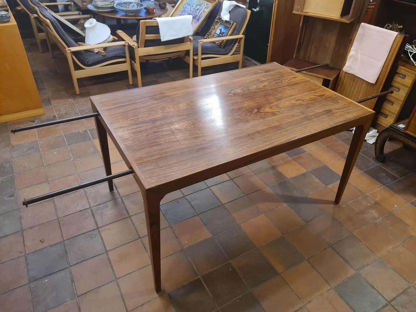 Text available in Danish: Kai Kristiansen spisebord m. 2 tillægsplader.