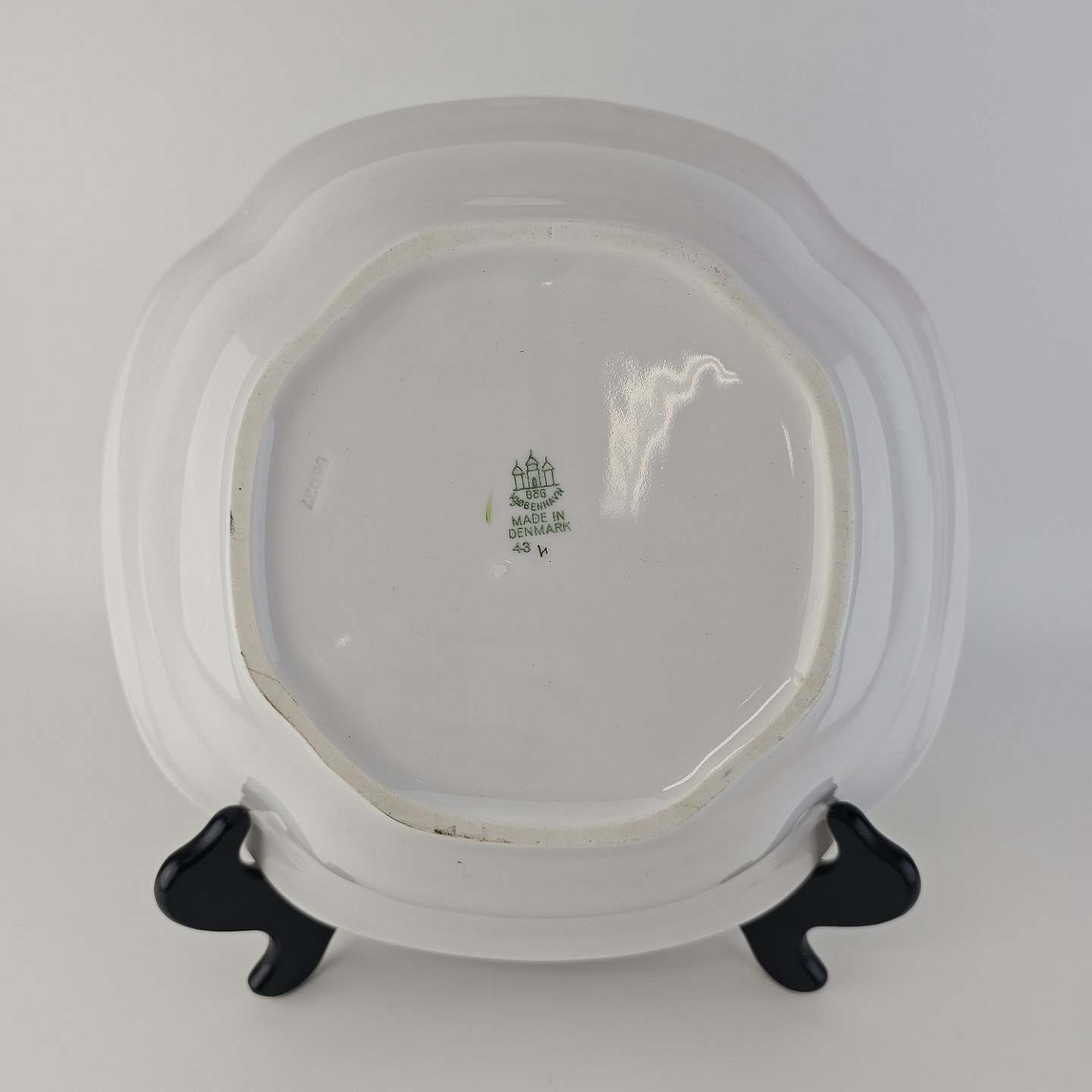 Antonius er af hvidt porcelæn med skælform dekoreret med håndmalede blå anemoner og guldkant. Også kendt under navnet Blå Anemone.