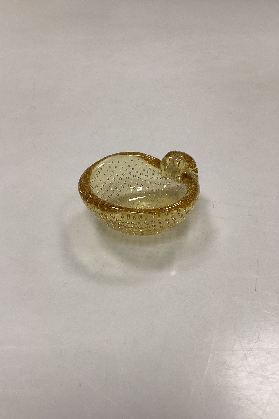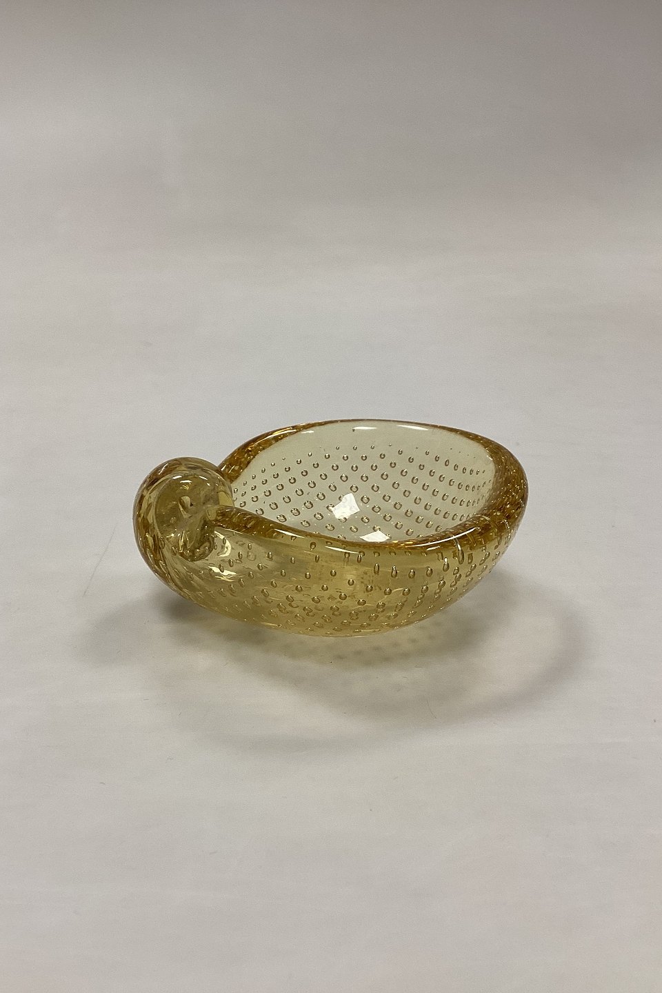 Small Glass Bowl with Bubbles. Probably Scandinavian from the 1950s. Color: Amber Yellow. Light signs of wear at the bottom, see photo. Measures 8 cm x 3 cm / 3.15 in. x 1.18 in.