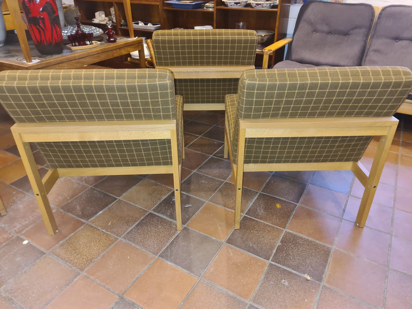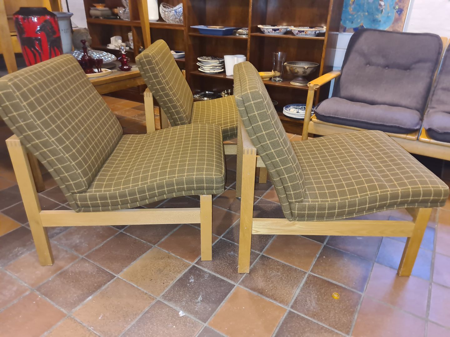 Text available in Danish: Sæt af 3 Moduline lounge stole i eg.