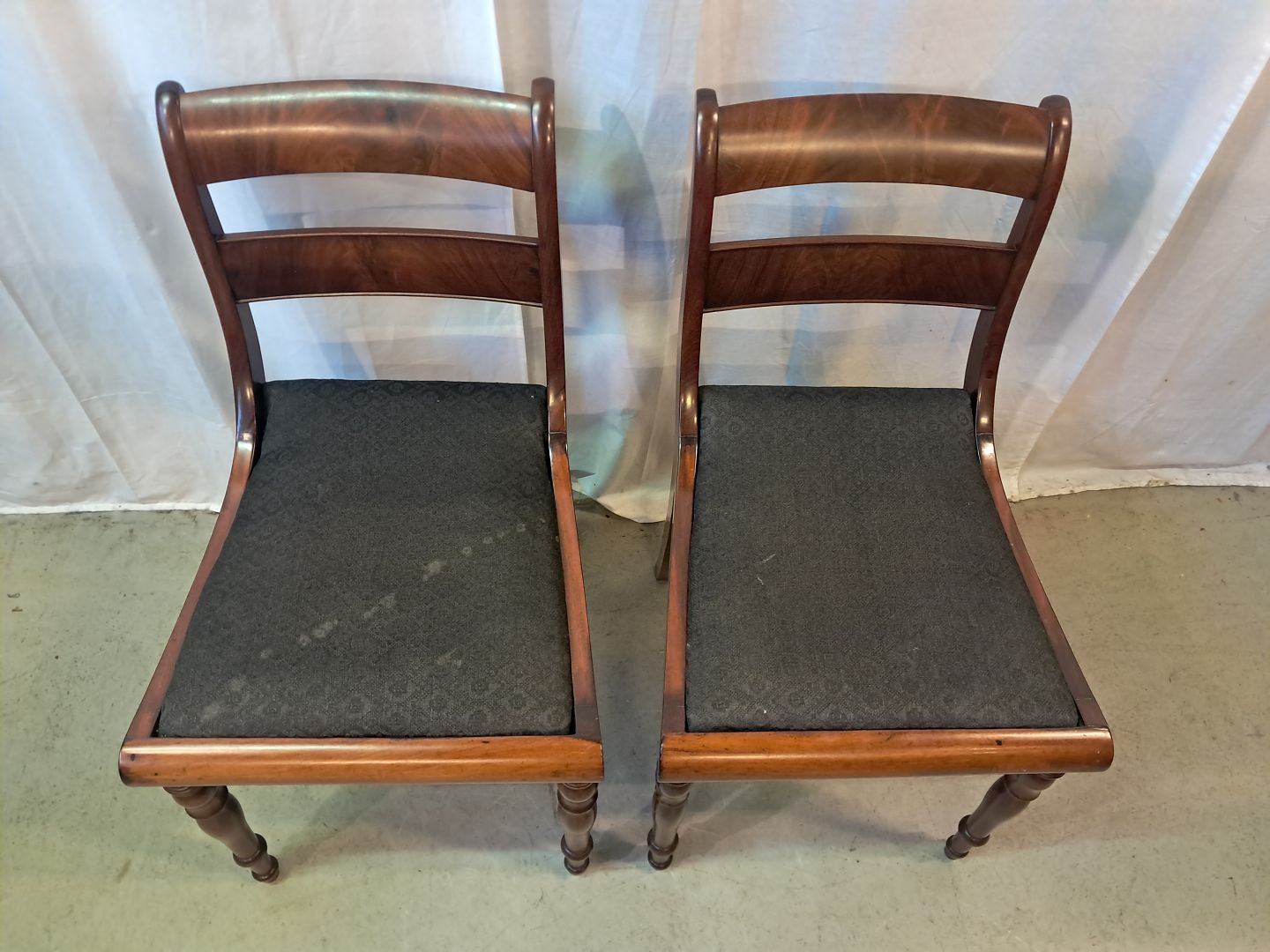 2 Salonstole i massivt mahogni og bøgetræ, fra 1910erne.