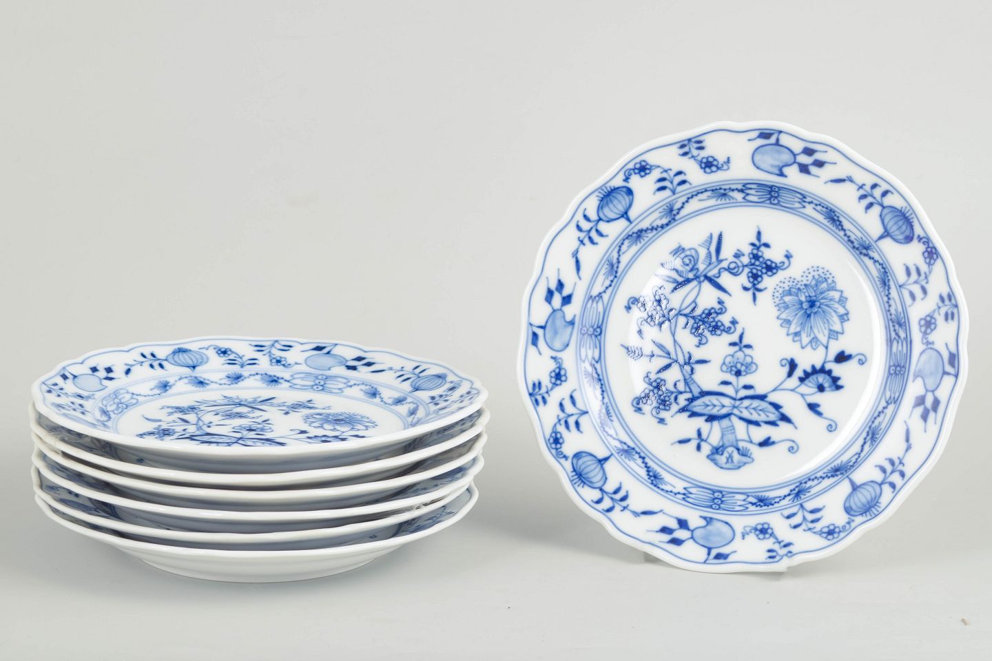 Meissen, Blue Onion salad plates, set of 7.