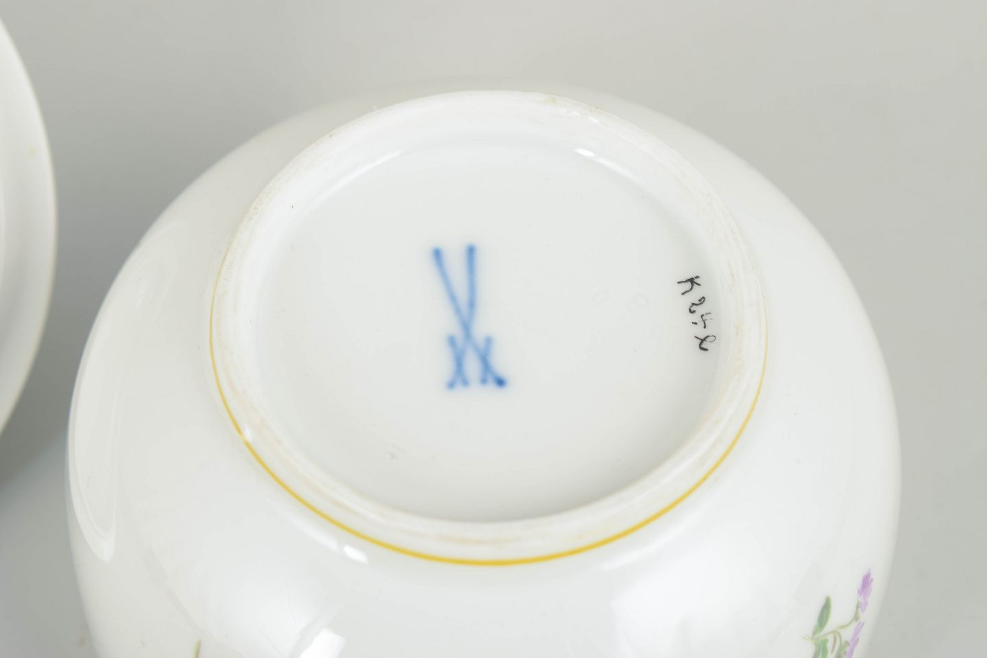 Founded in 1710, Meissen is Europe’s oldest porcelain manufactory. The crossed swords mark, introduced in the 1720s, is one of the most recognisable porcelain marks worldwide and signifies authenticity and high quality. In the early 20th century, Meissen continued to produce classical lidded bowls with hand-painted floral decoration, characterised by refined proportions, meticulous workmanship, and continuity with the manufactory’s long-standing porcelain traditions.