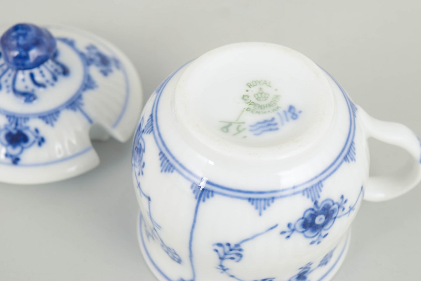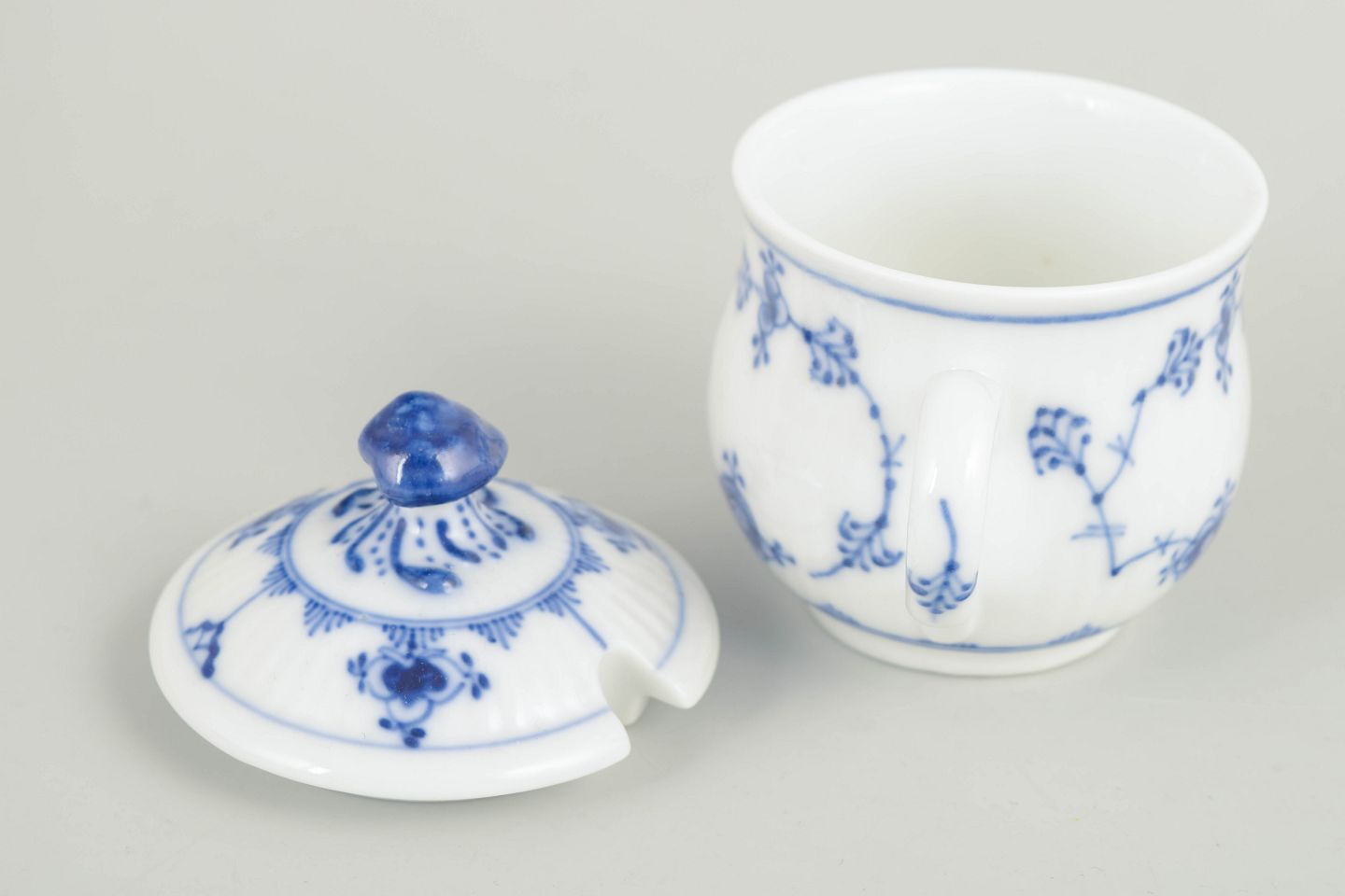 Royal Copenhagen, Blue Fluted Plain cream cup with lid.
