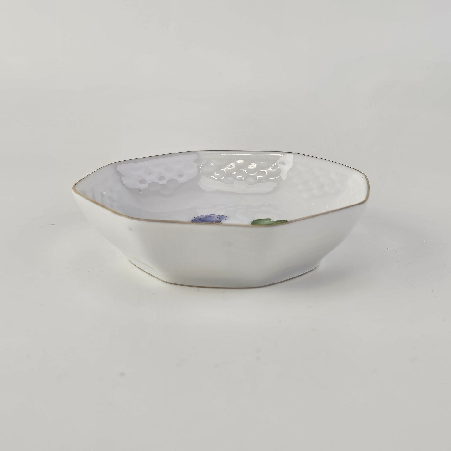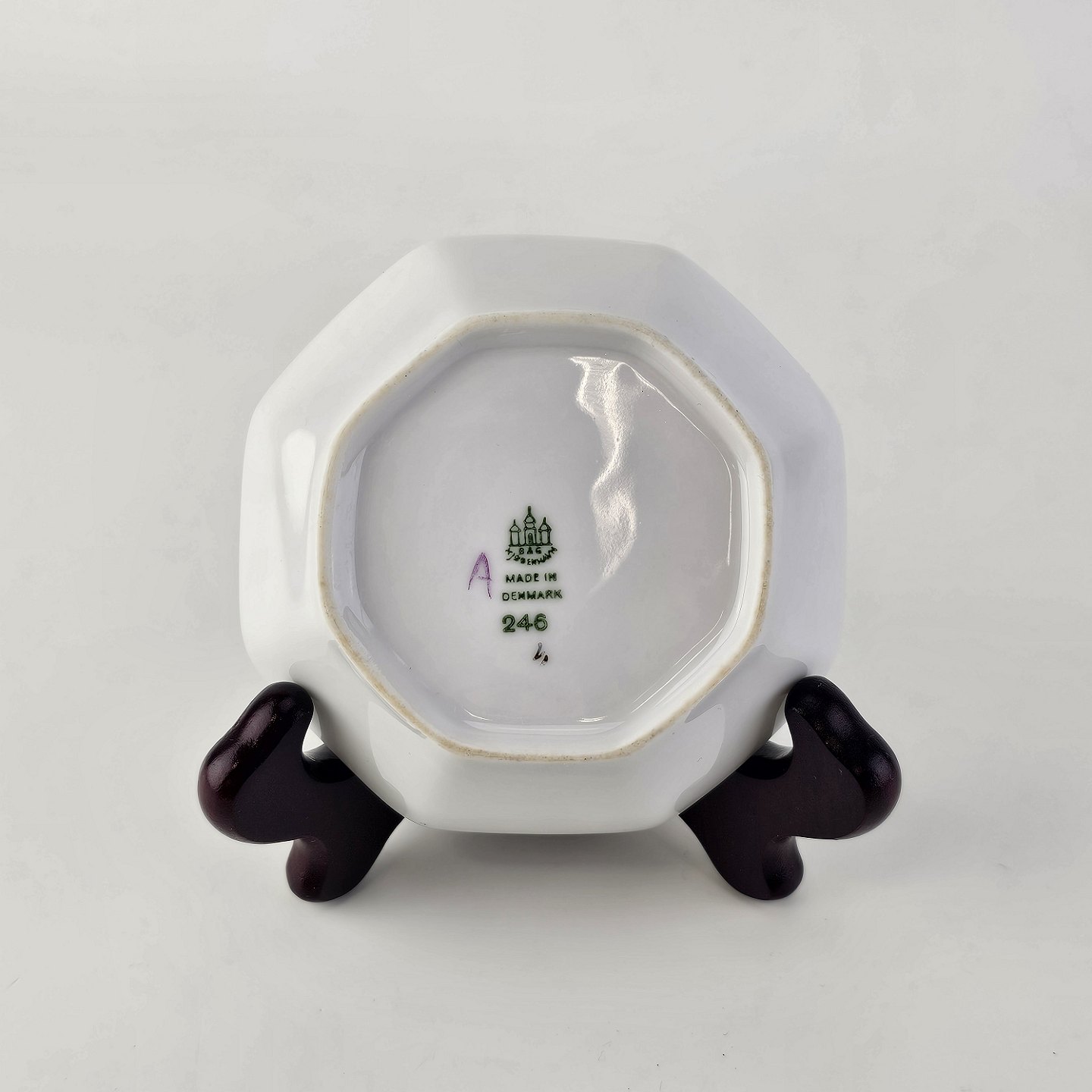 Antonius er af hvidt porcelæn med skælform dekoreret med håndmalede blå anemoner og guldkant. Også kendt under navnet Blå Anemone.