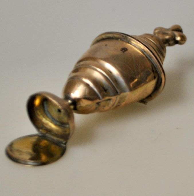 Niels Peter Falck (1779 - 1858) Holbæk, Denmark: Baroque main water egg with top and embalming chamber. Stamped in the embalming chamber. With side decorations. H.: 10.5 cm.
