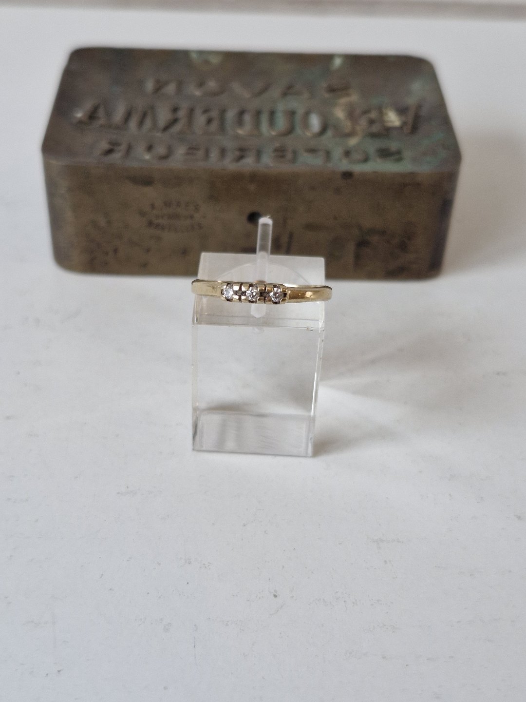 Vintage ring in 14 kt gold with 3 small brilliant-cut diamonds