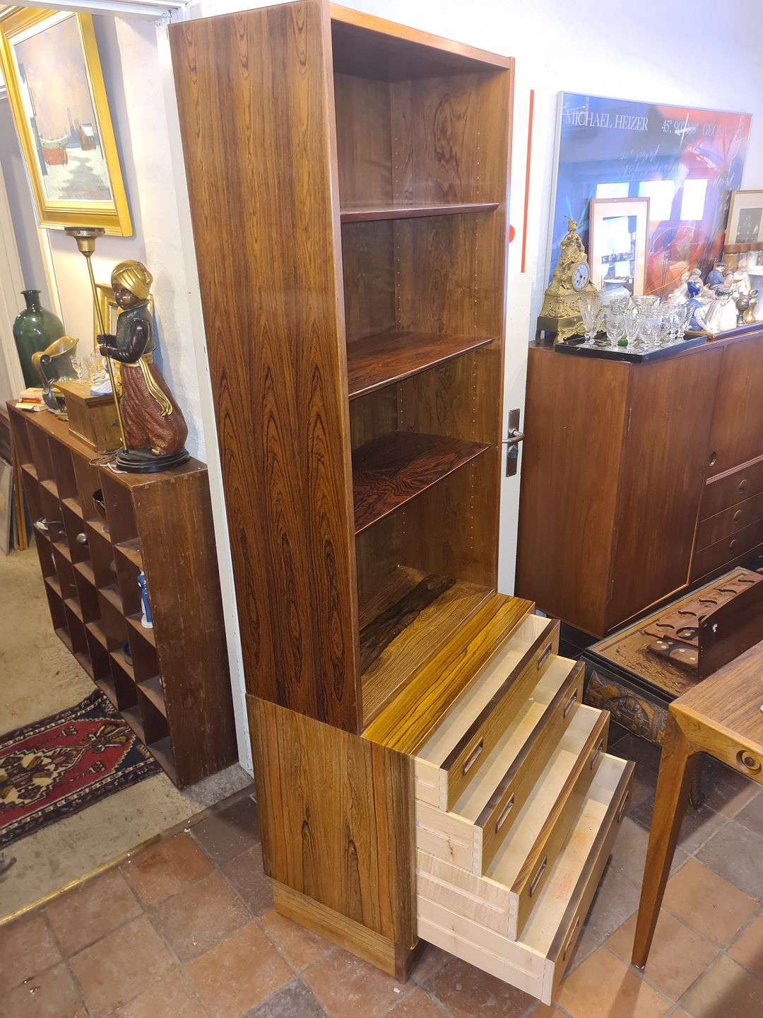 Text available in Danish: Hundevad reol i palisander.