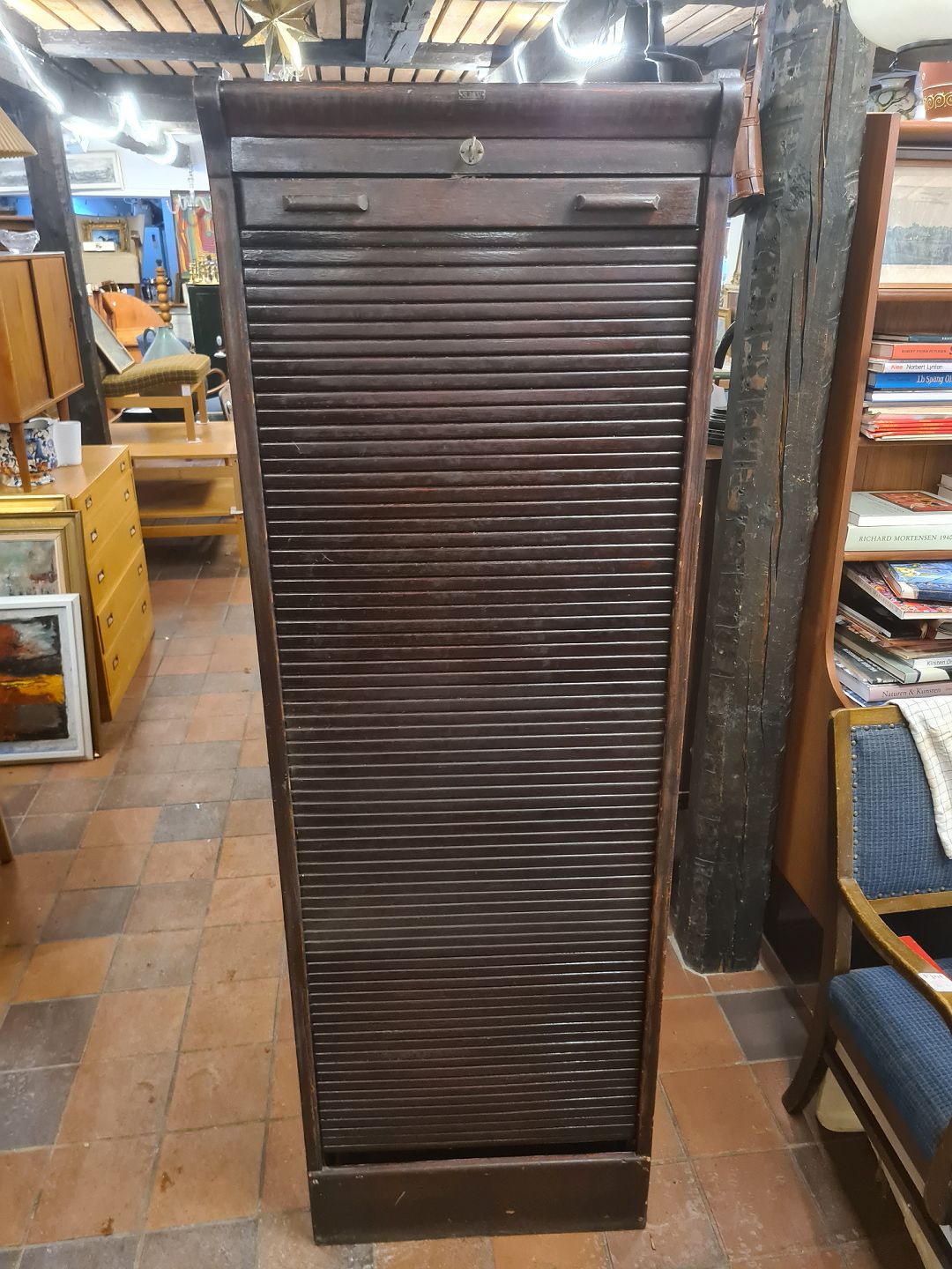 Text available in Danish: Arkivskab m. jalousi.