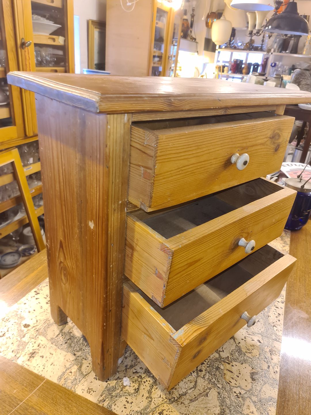 Lille kommode i fyrretræ.