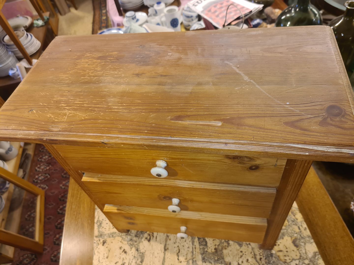 Lille kommode i massiv fyrretræ.