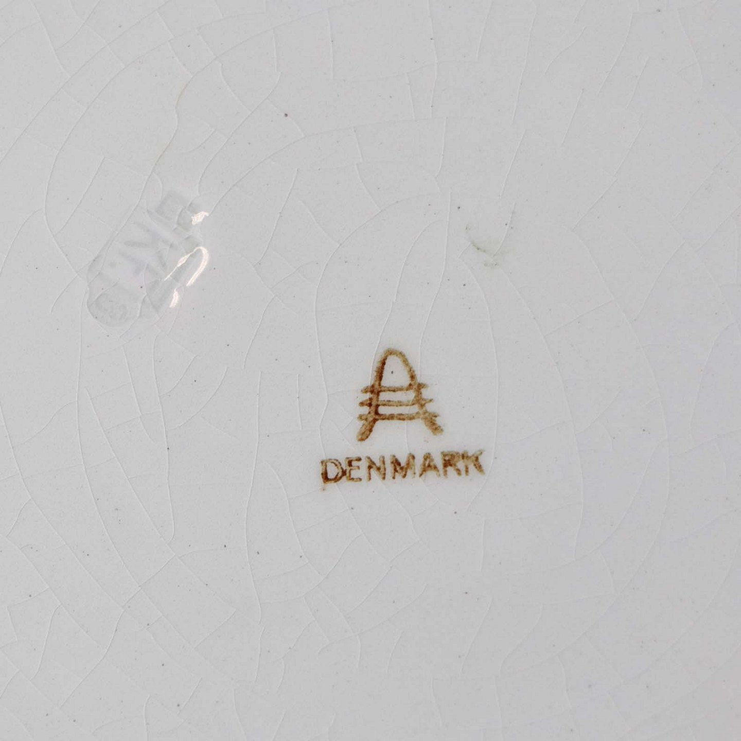 Dyb suppetallerken i fajance fra Hjortestellet Convolvolus, som blev fremstillet i perioden 1930-1940