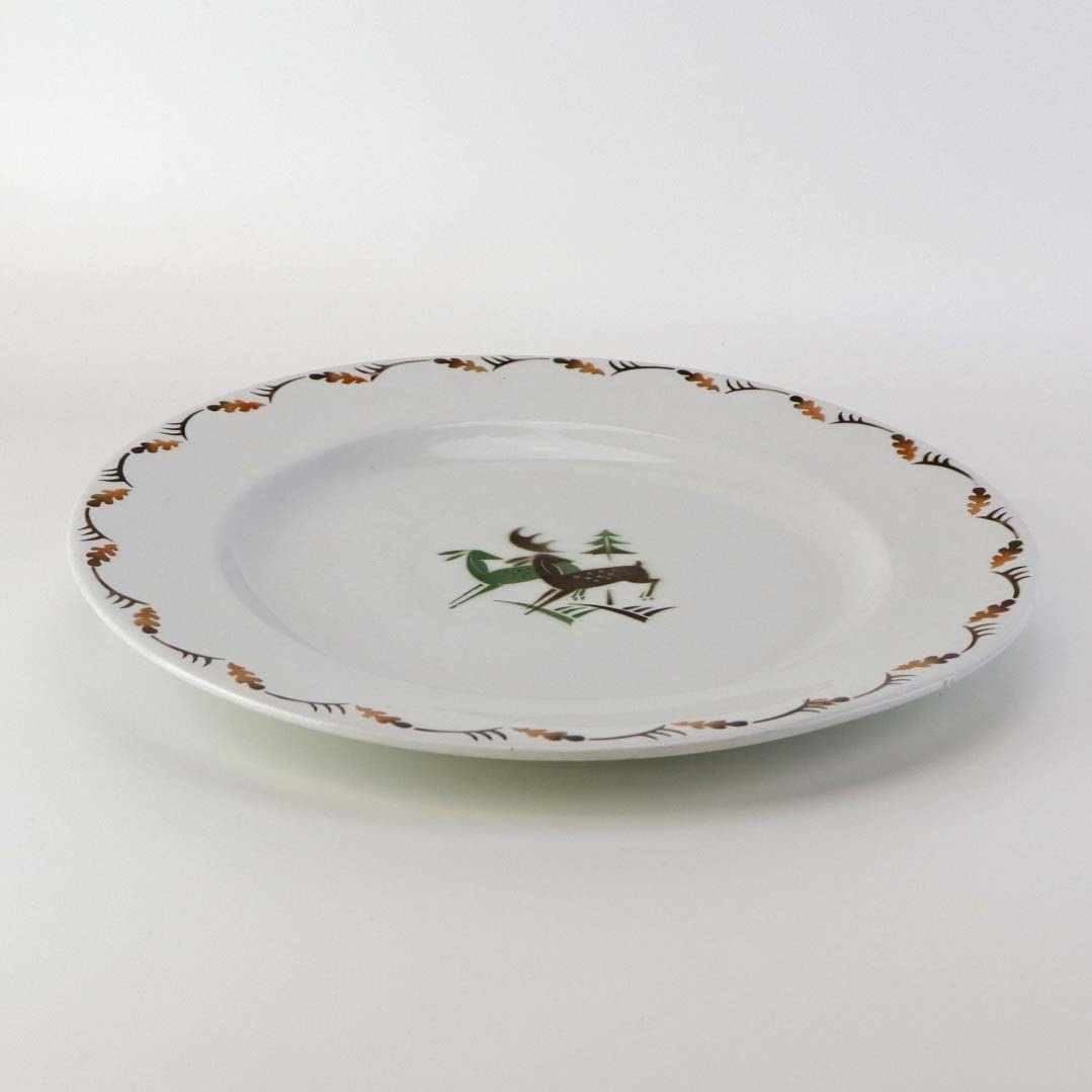 Flad middagstallerken i fajance fra Hjortestellet Convolvolus, som blev fremstillet i perioden 1930-1940