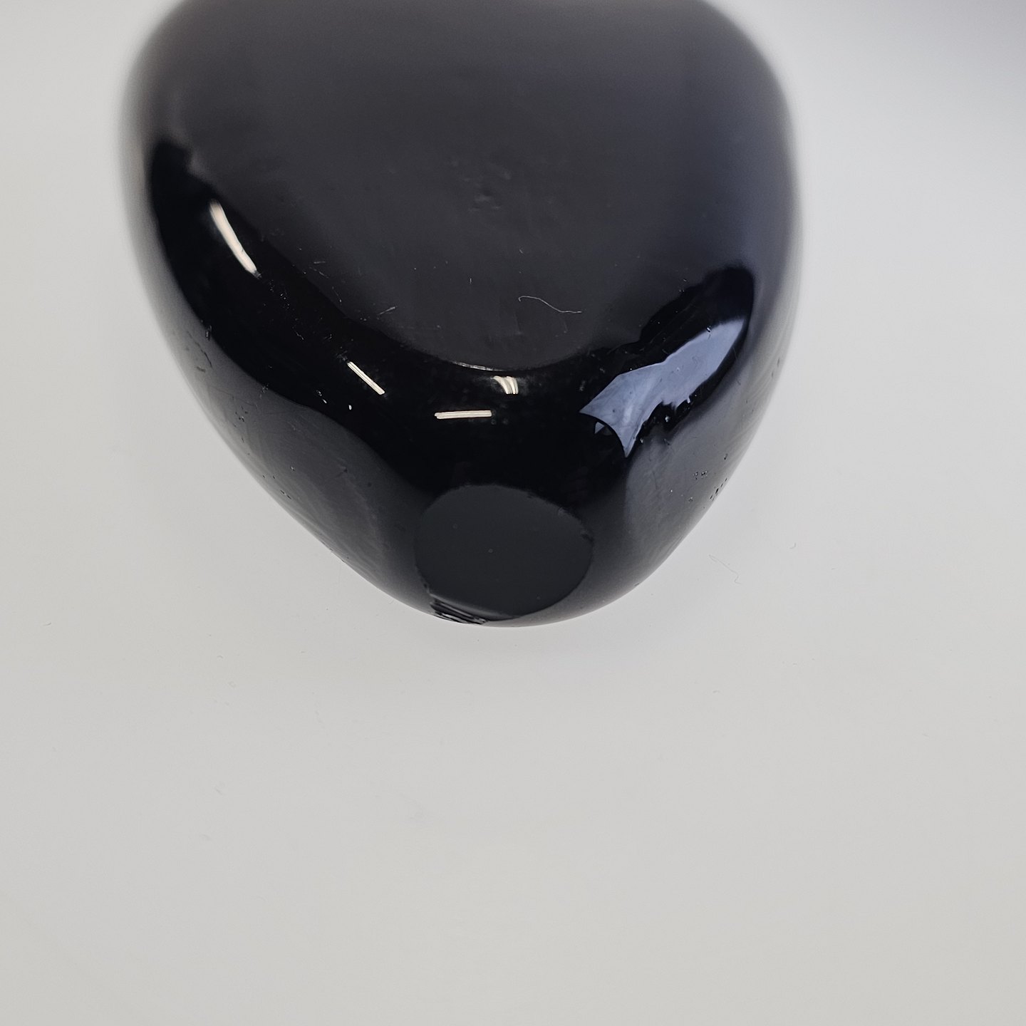 Håndblæst dråbeformet flaske i lilla glas med korkprop