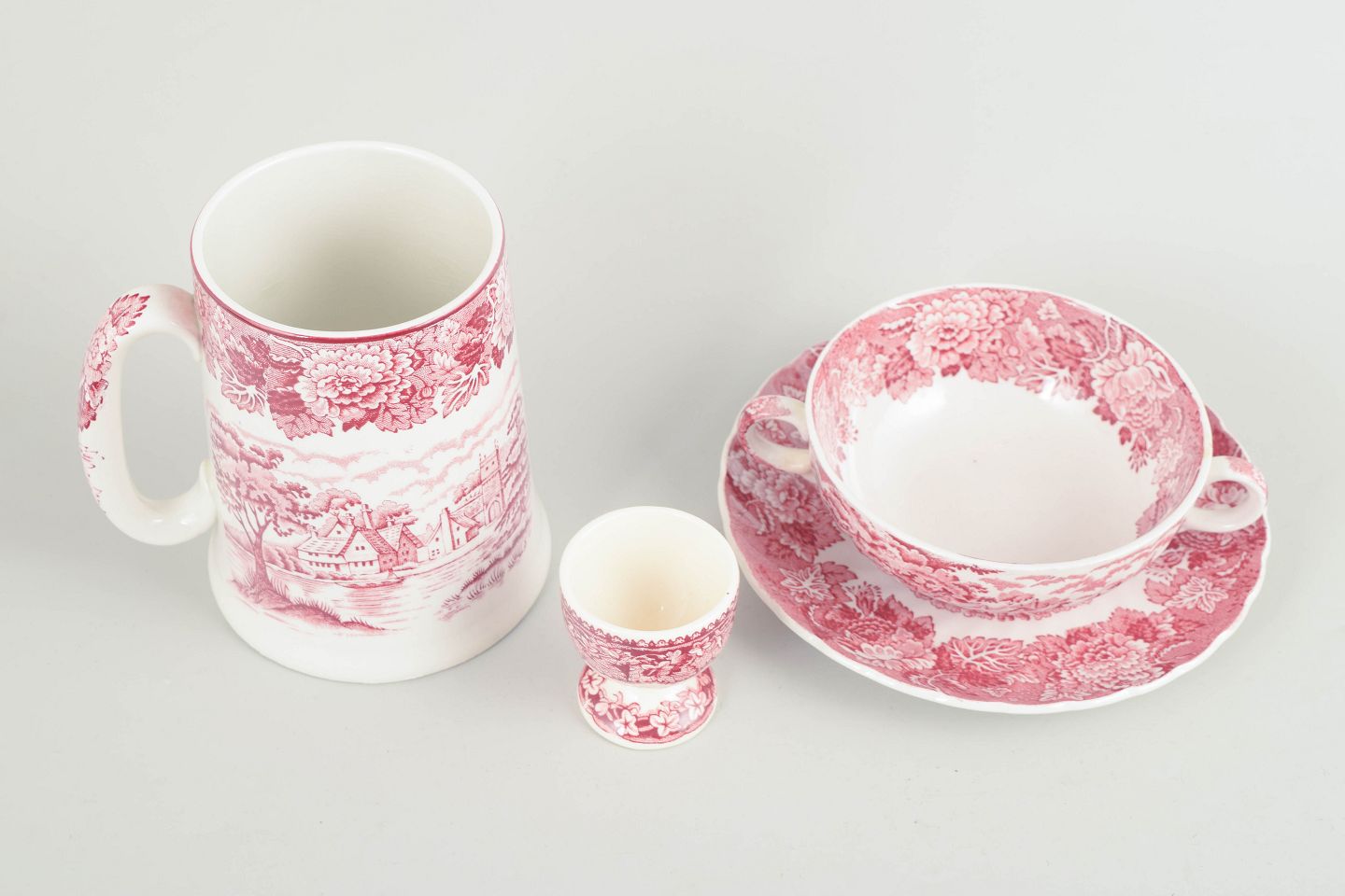Mason’s, Wood & Sons, set of beer jug, bouillon cup with saucer and egg cup.