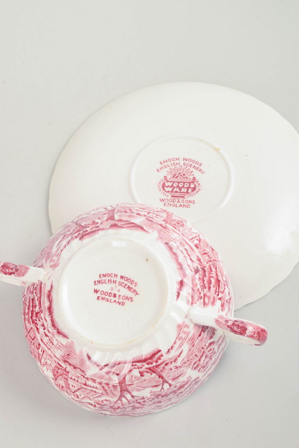 Wood & Sons was founded in Staffordshire in 1865 and became an important producer of English faience and tableware. The factory is particularly known for its decorative transferware patterns, often featuring historical and pastoral scenes. Production included both everyday wares and more decorative items, many of which were widely exported. Collaboration and parallel production for companies such as Mason’s were common during the period.