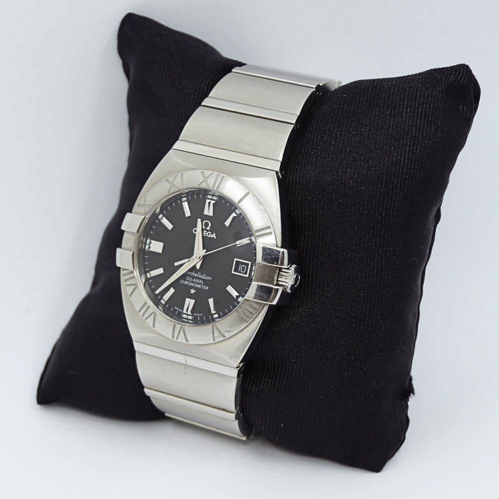 Omega; A gentleman's wristwatch model Constellation Double Eagle. Steel with steel strap. Co-axial chronometer. Ref. 15035100. Cal: 2500. Automatic. Omega men's watch, purchased from new on 12/09/07. Watch diameter 42 mm. With original box and documents. Extra link included.