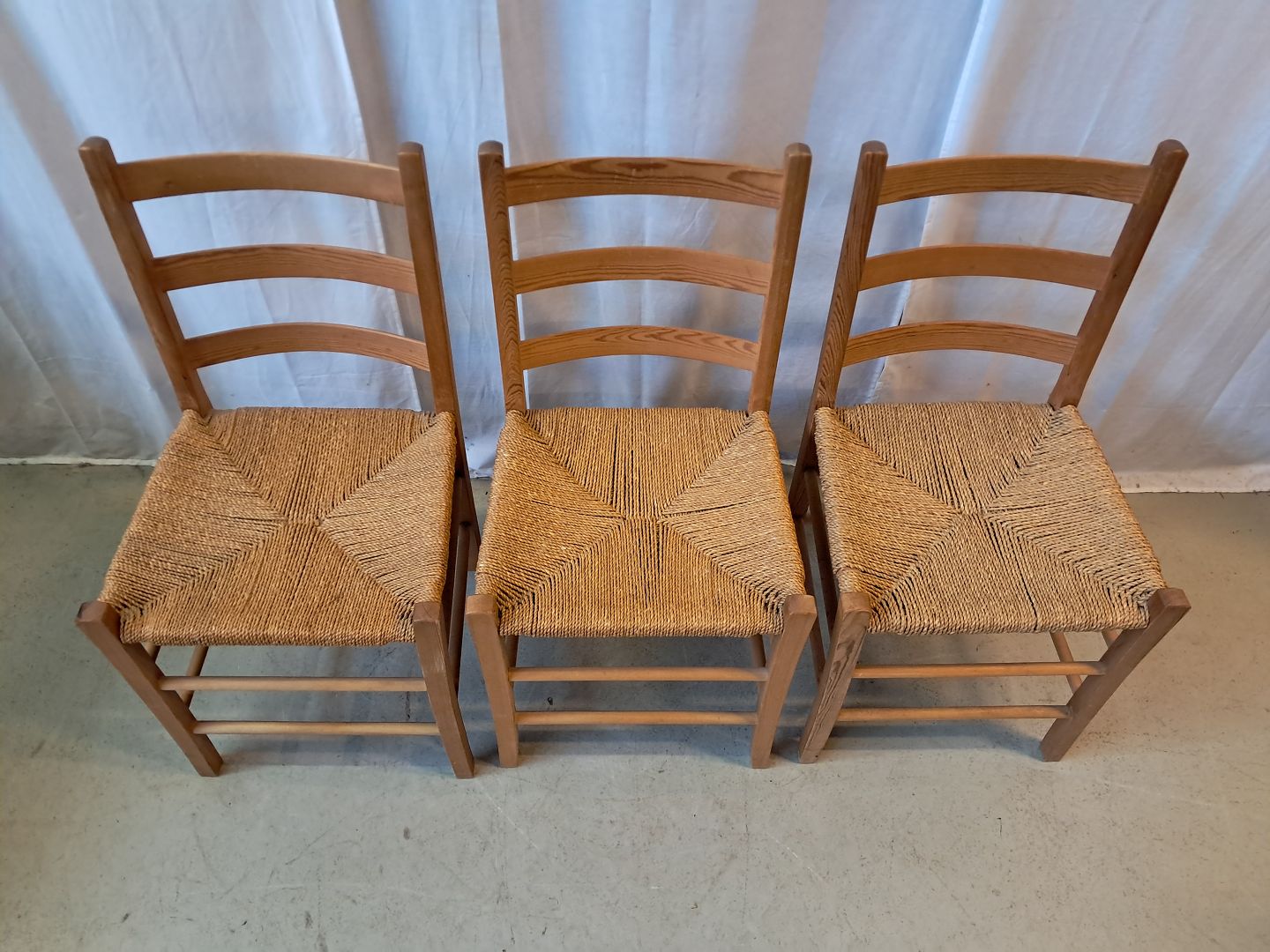3 Stole i massivt fyrretræ, fra 1980erne.